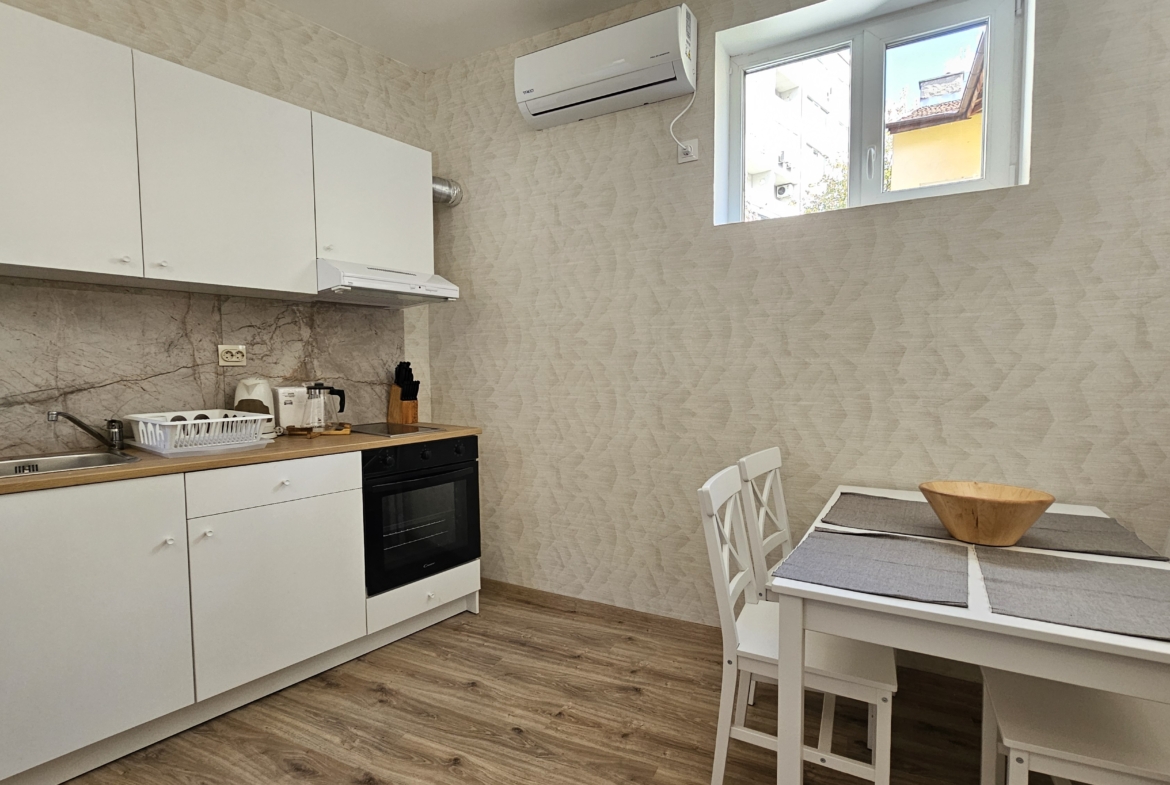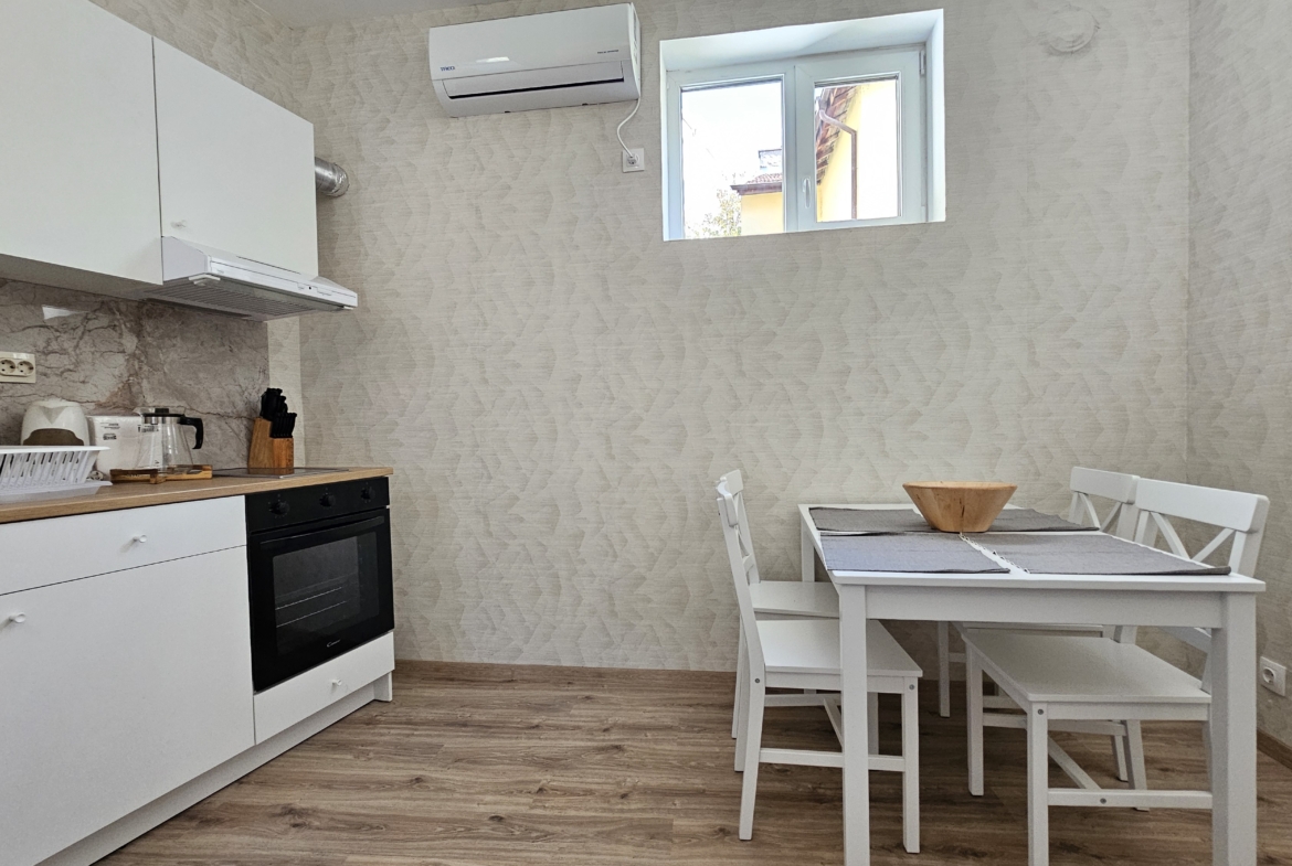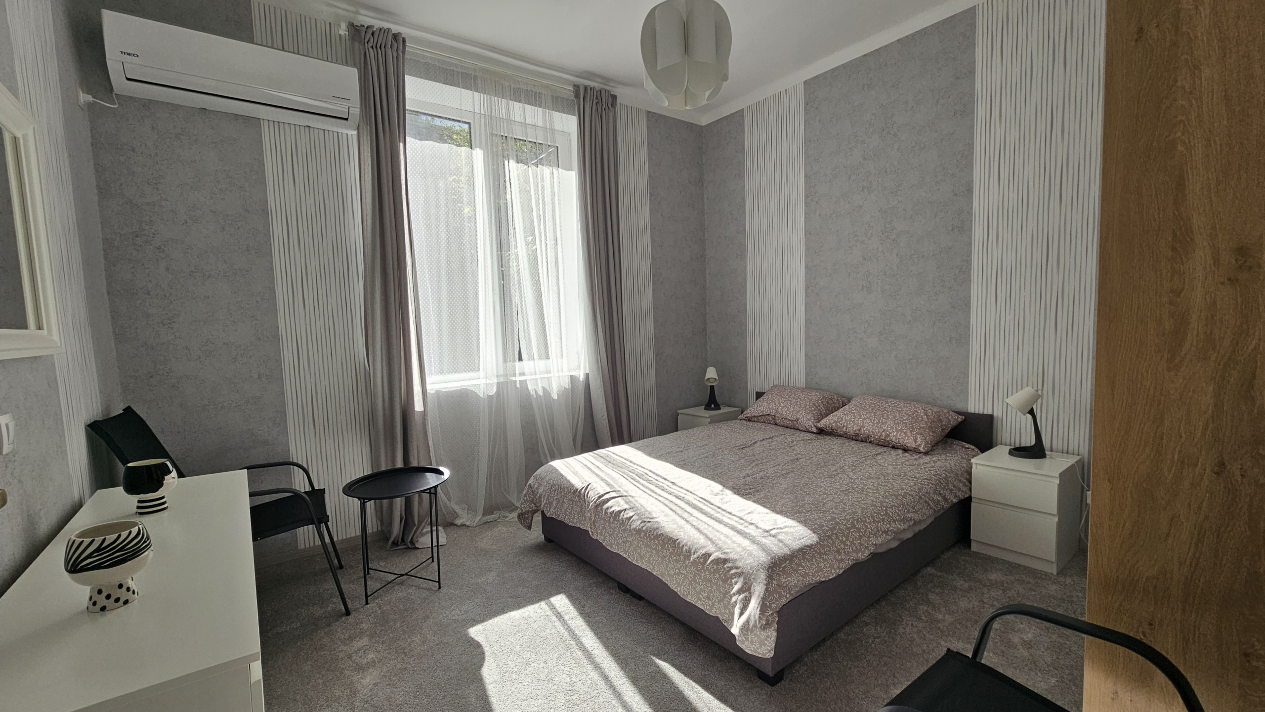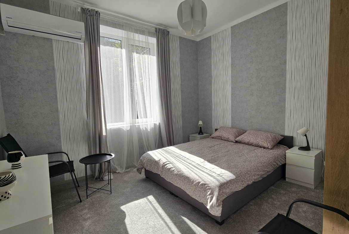 A separate floor of a house with a shared entrance, located on Pop Bogomil Street. The property has a total area of 100 sq m (60 net square meters) and consists of a bright bedroom, a dining room with a kitchen, a separate living room, one bathroom and a cozy yard, which provides peace and a feeling of solitude in the dynamics of the city center.