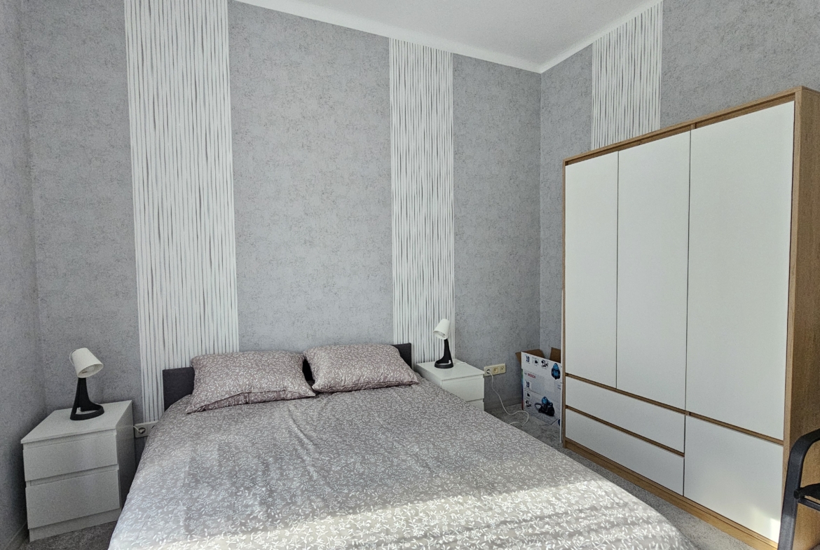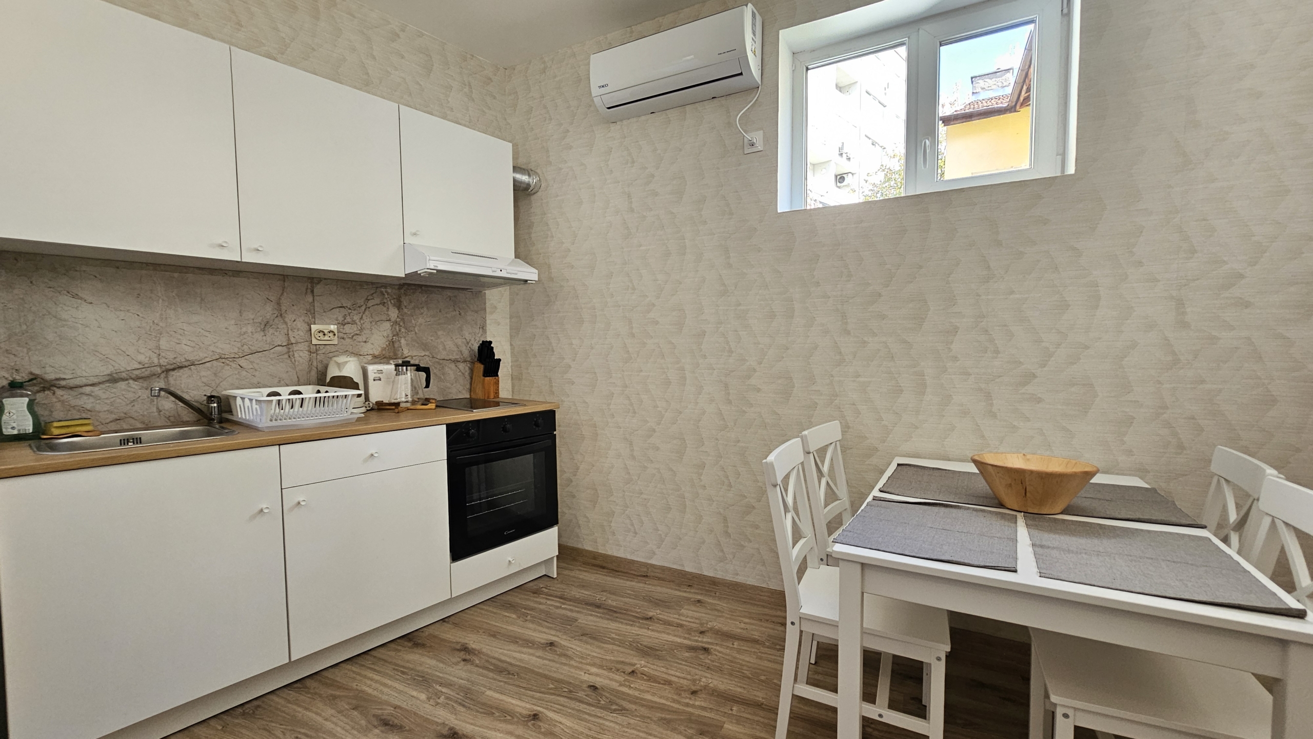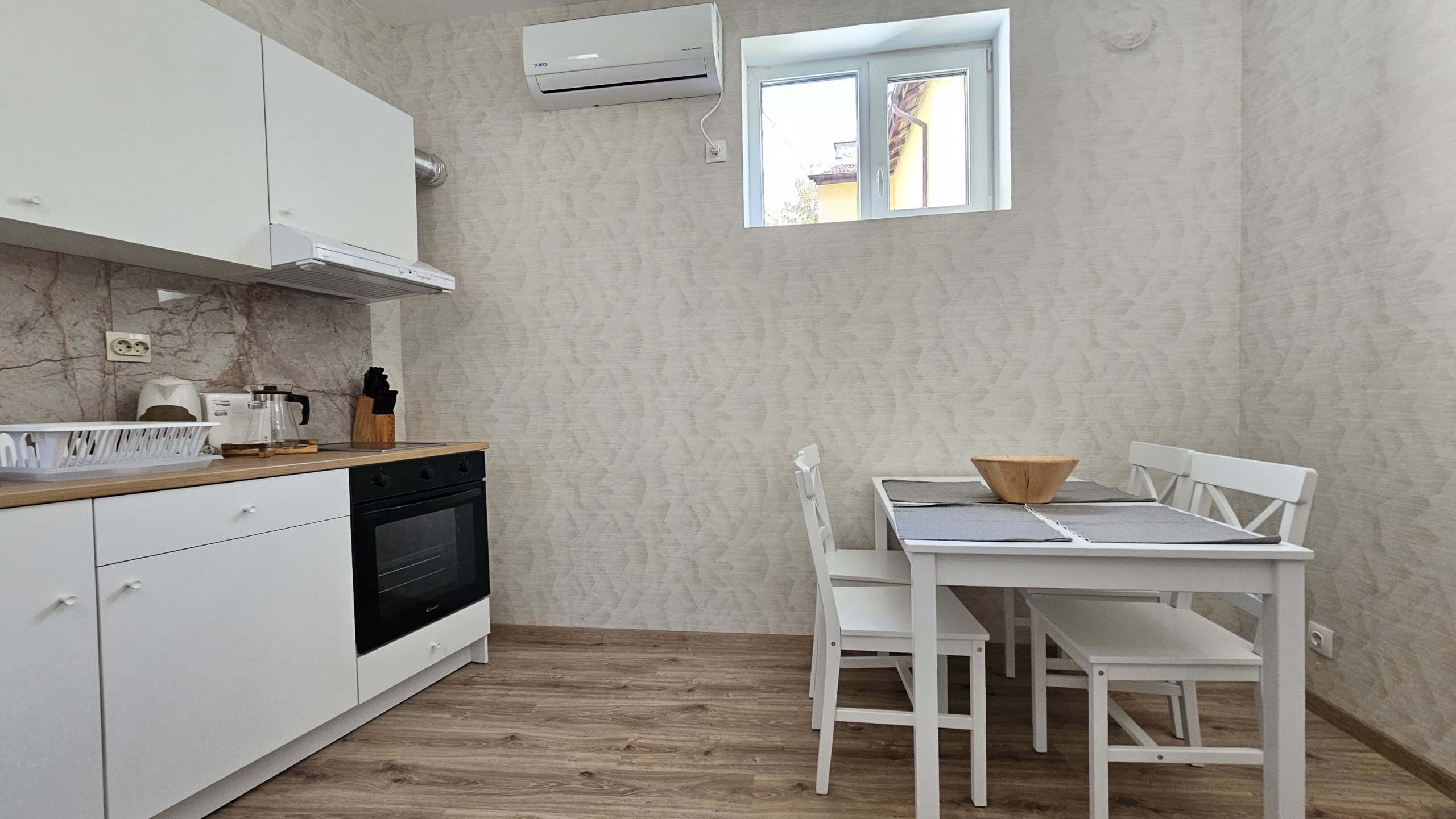 A separate floor of a house with a shared entrance, located on Pop Bogomil Street. The property has a total area of 100 sq m (60 net square meters) and consists of a bright bedroom, a dining room with a kitchen, a separate living room, one bathroom and a cozy yard, which provides peace and a feeling of solitude in the dynamics of the city center.