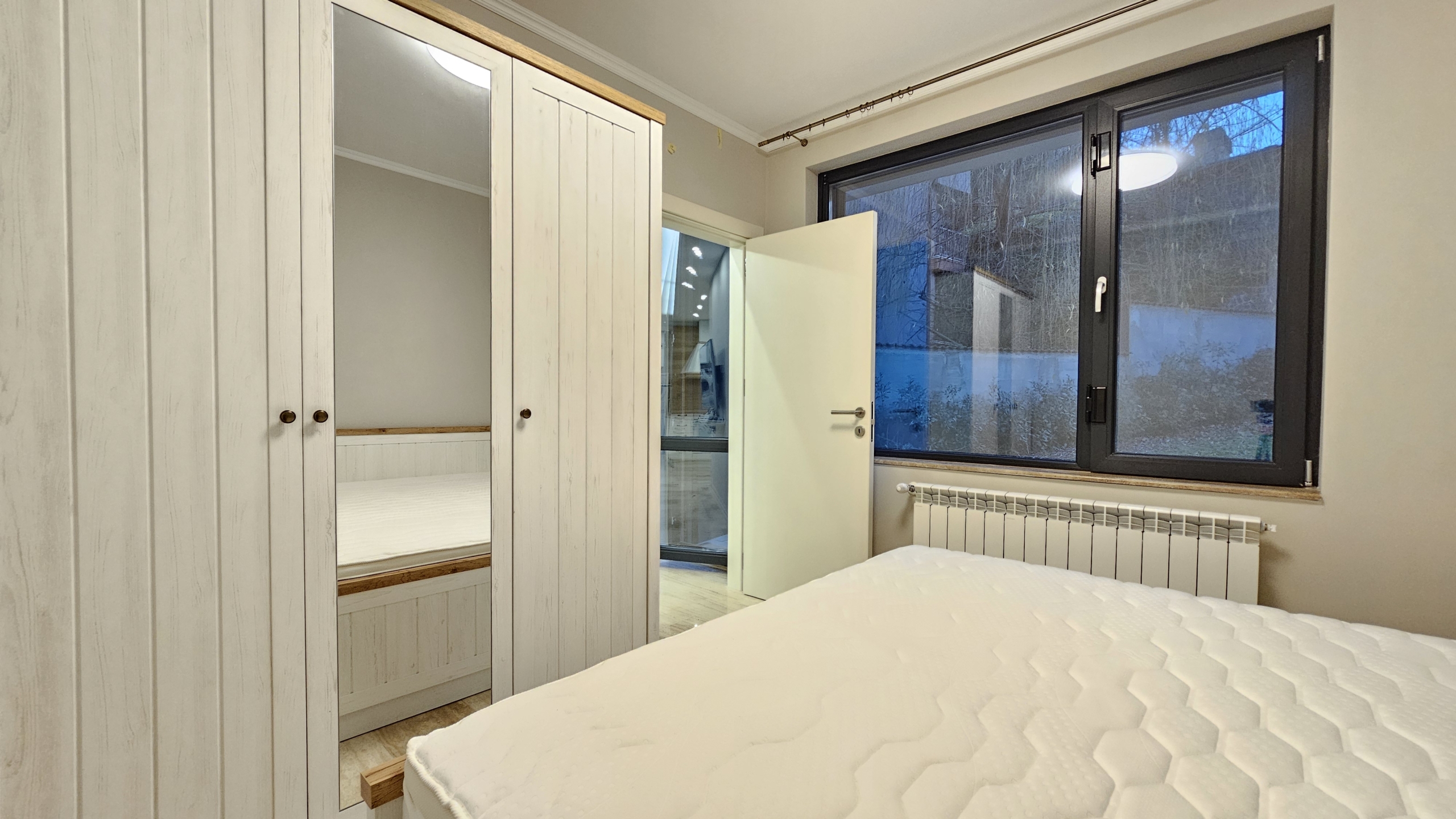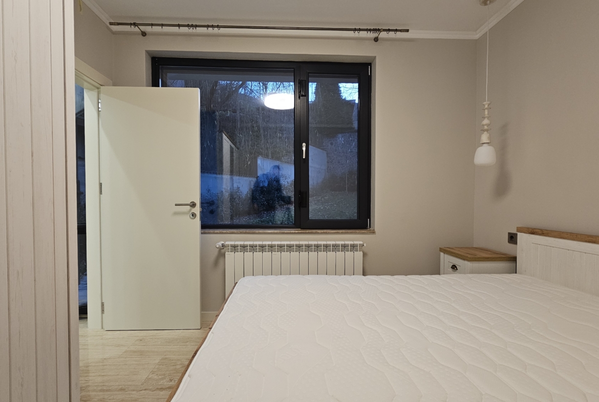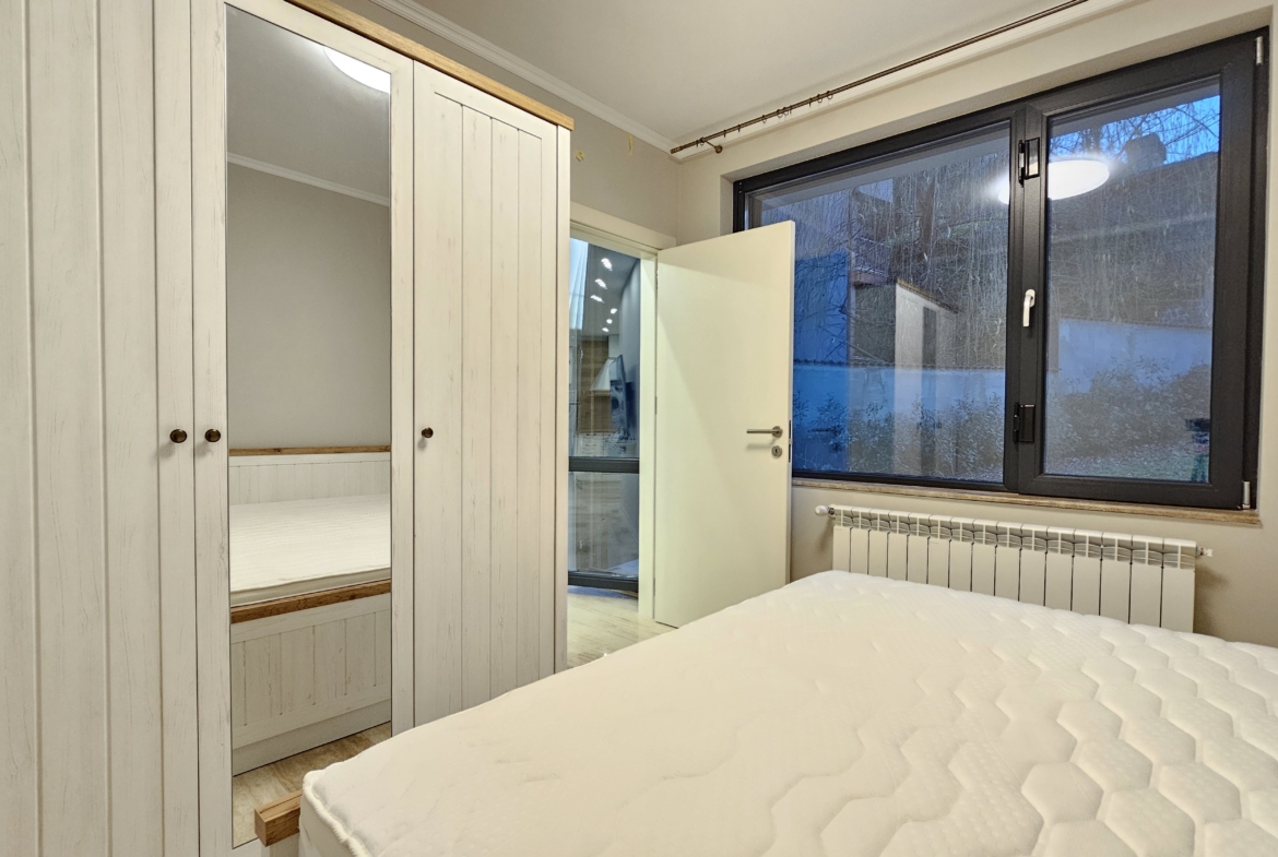 The apartment is located on first floor and has own yard, without access to third parties, suitable for relaxation, gardening or family moments outdoors. The apartment is after complete furnishing and has an area of 50 sq m, distributed as follows: