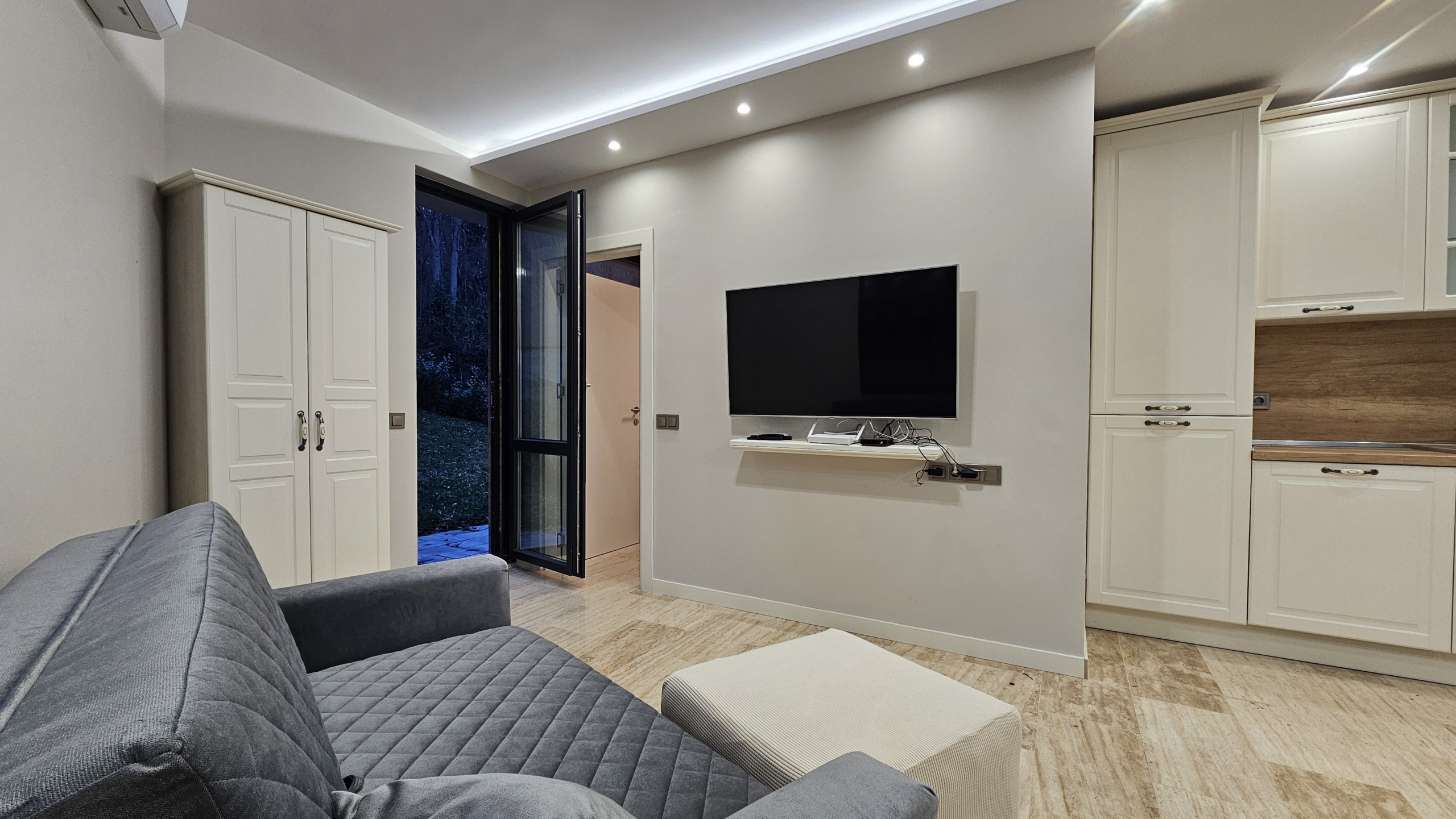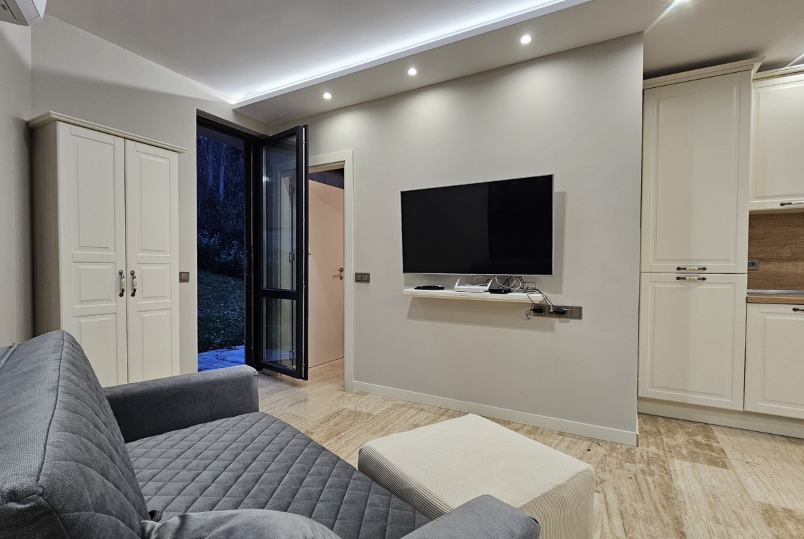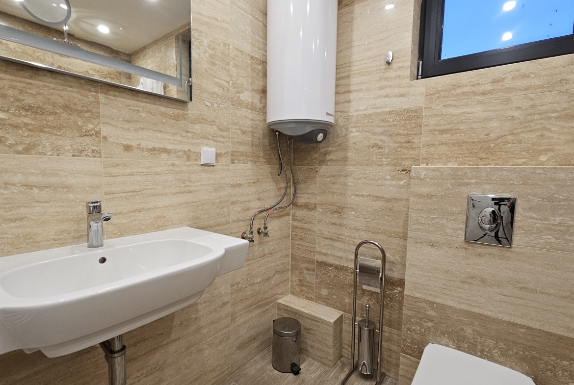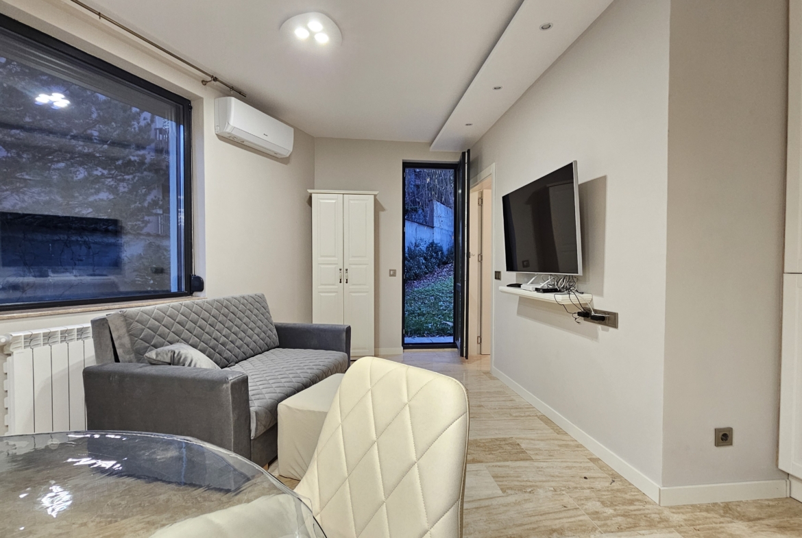 The apartment is located on first floor and has own yard, without access to third parties, suitable for relaxation, gardening or family moments outdoors. The apartment is after complete furnishing and has an area of 50 sq m, distributed as follows: