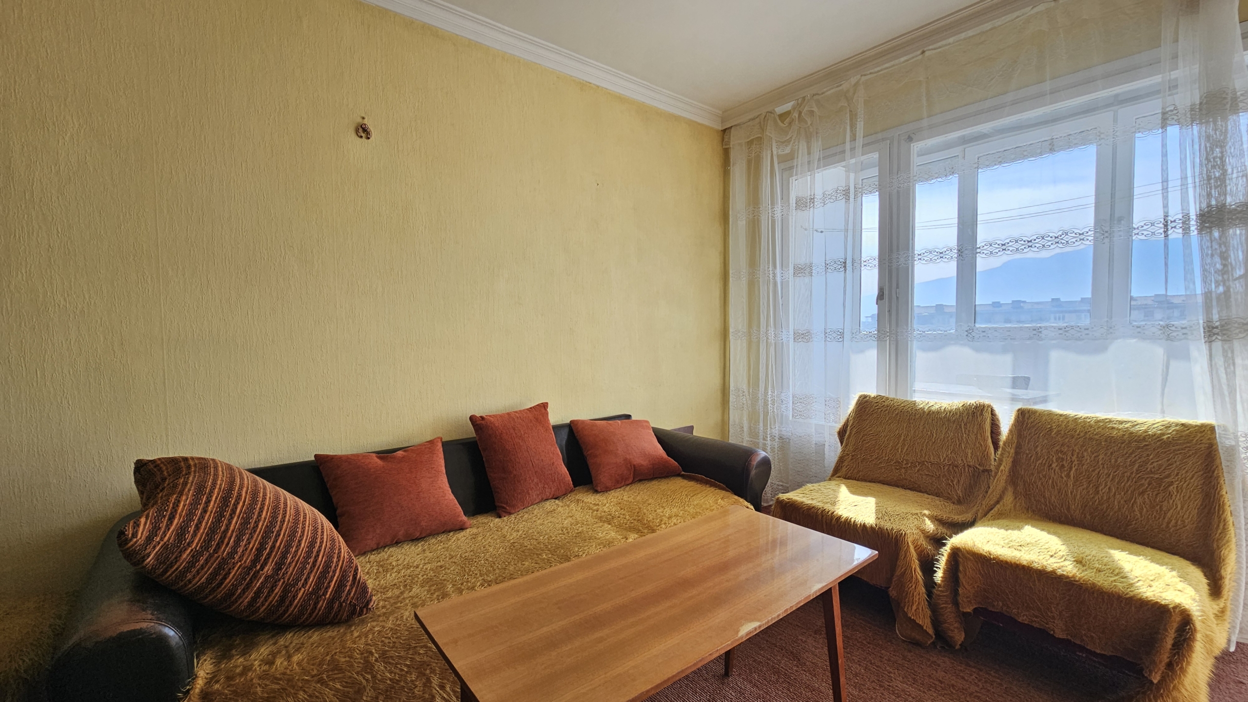 Rent spacious and bright apartment in the district Ilinden, located on the 8th floor with panoramic views of the city. The apartment has excellent southern exposure and large windows that provide natural light throughout the day.