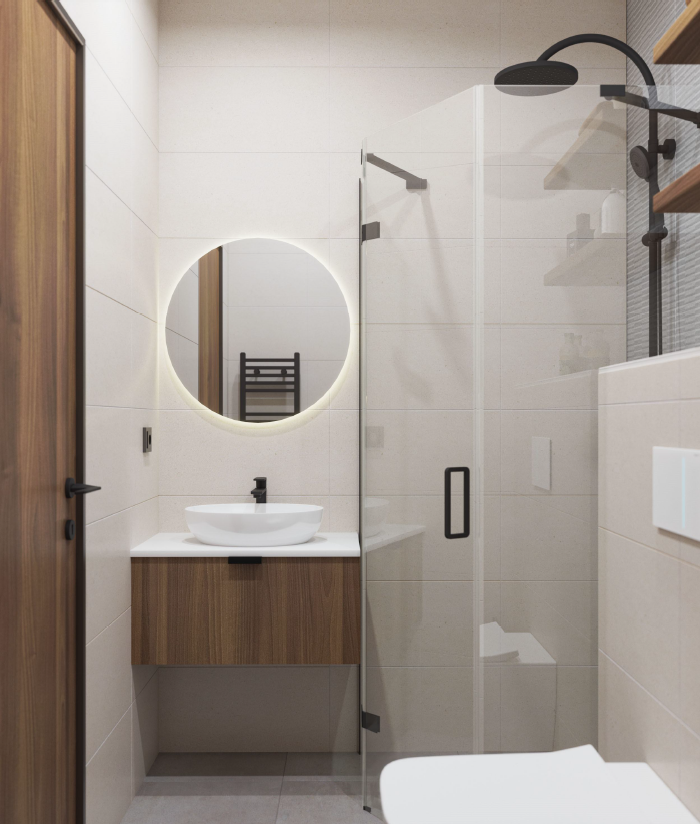 Това е едностаен апартамент проектиран с внимание към детайла и максимално ефективно използване на пространството. Разполага с входно антре (3.20 кв.м), с дневна зона включваща трапезария, кухня и малък спален кът (20.15 кв.м) и баня с тоалетна (2.80 кв.м).