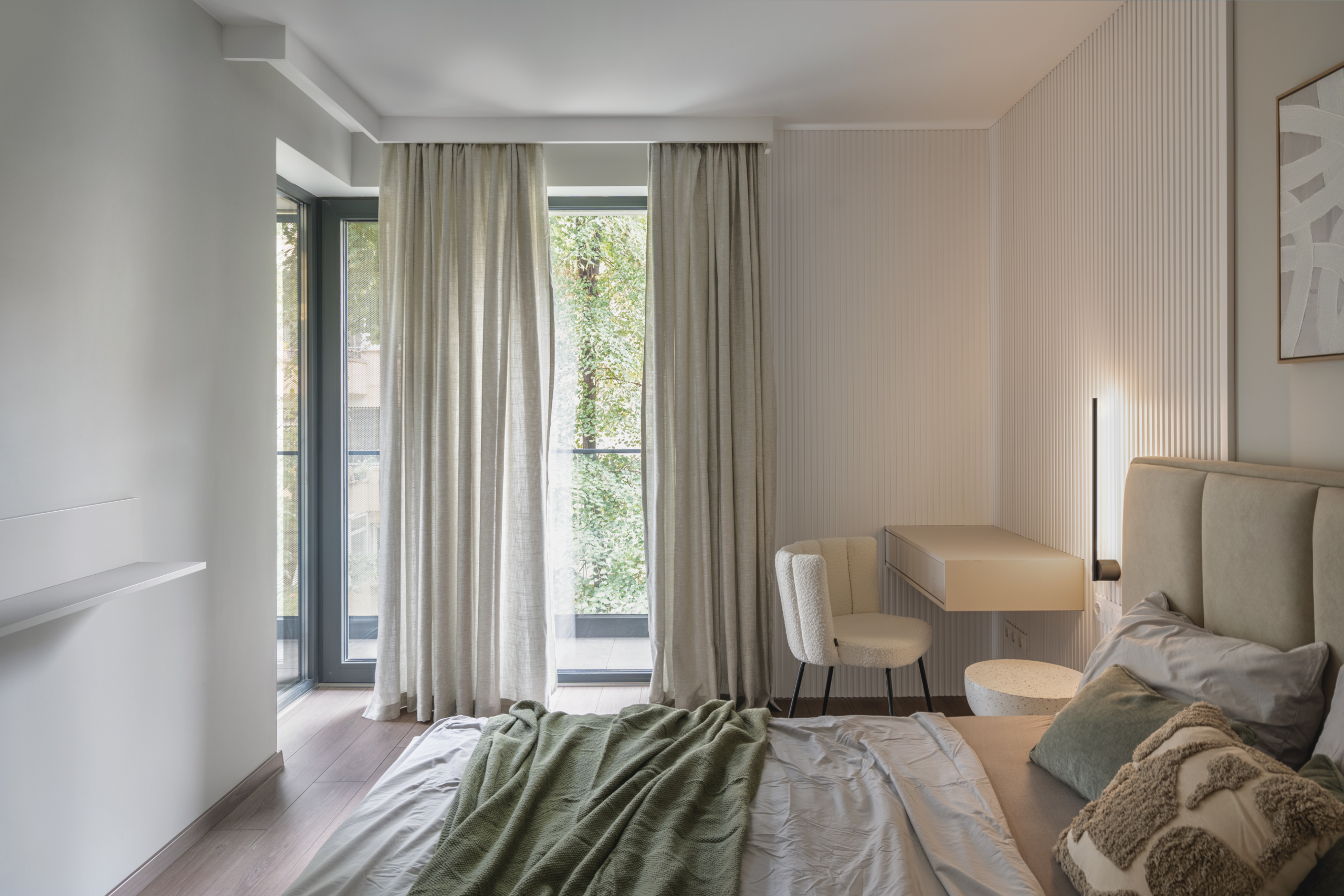 • Просторна всекидневна с кухненски бокс и френски прозорци, осигуряващи оптимална светлина.