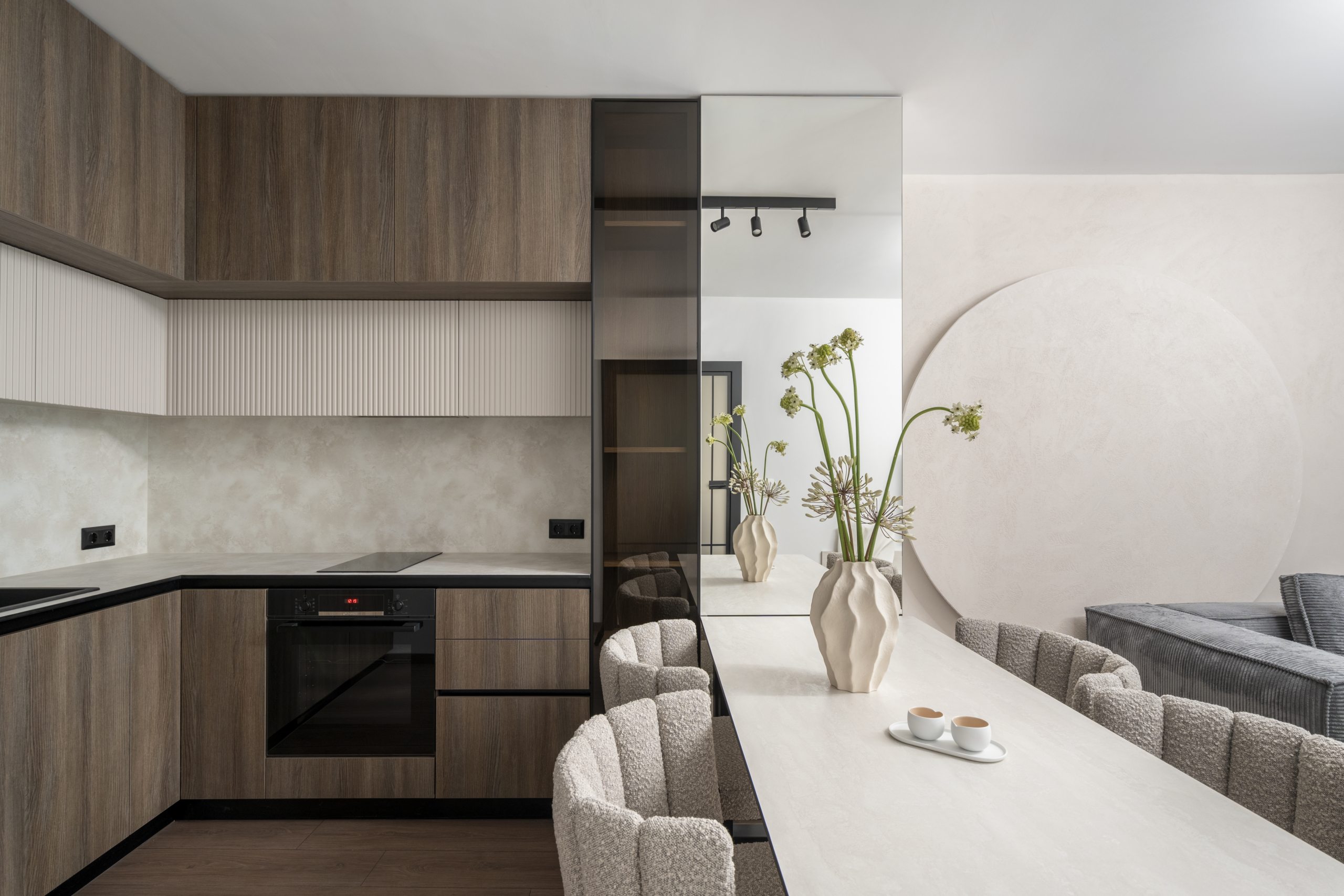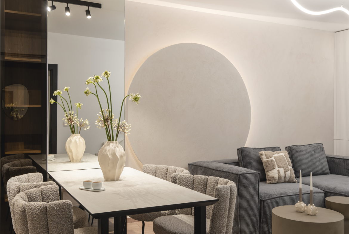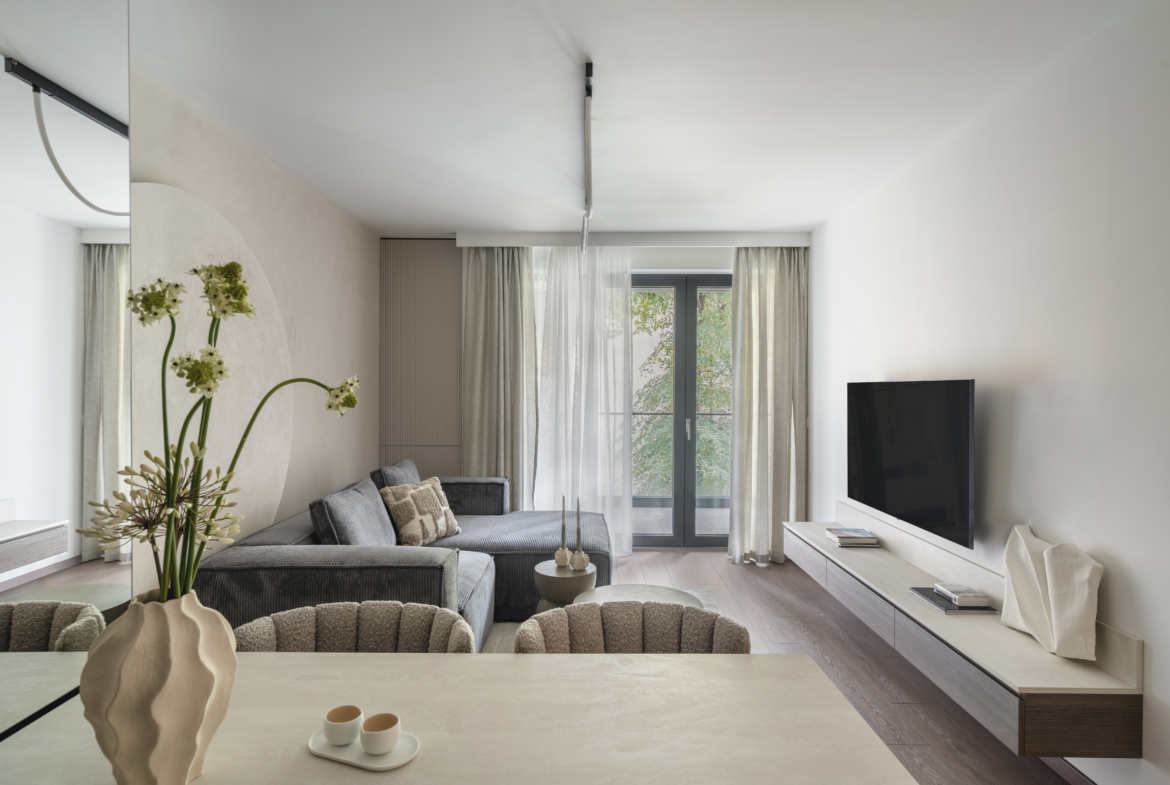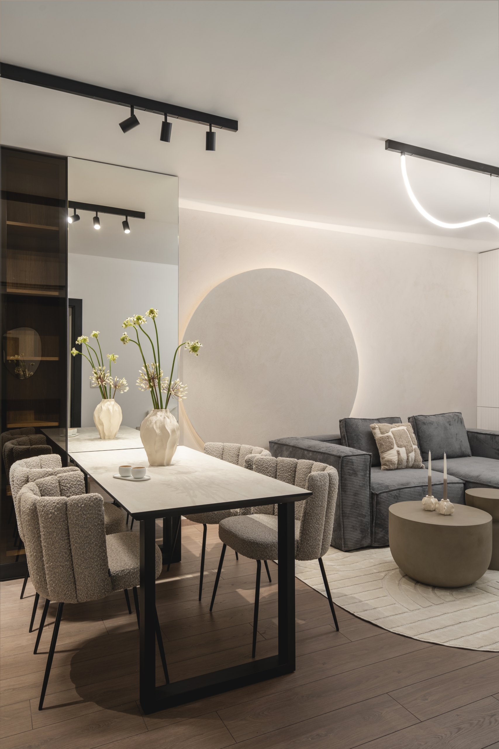 Напълно обзаведен луксозен апартамент, разположен в чисто нова сграда от 2024 г. Интериорът е изпълнен в меки земни тонове, които създават усещане за уют и спокойствие. Жилището разполага с 64 кв.м рапределени между: