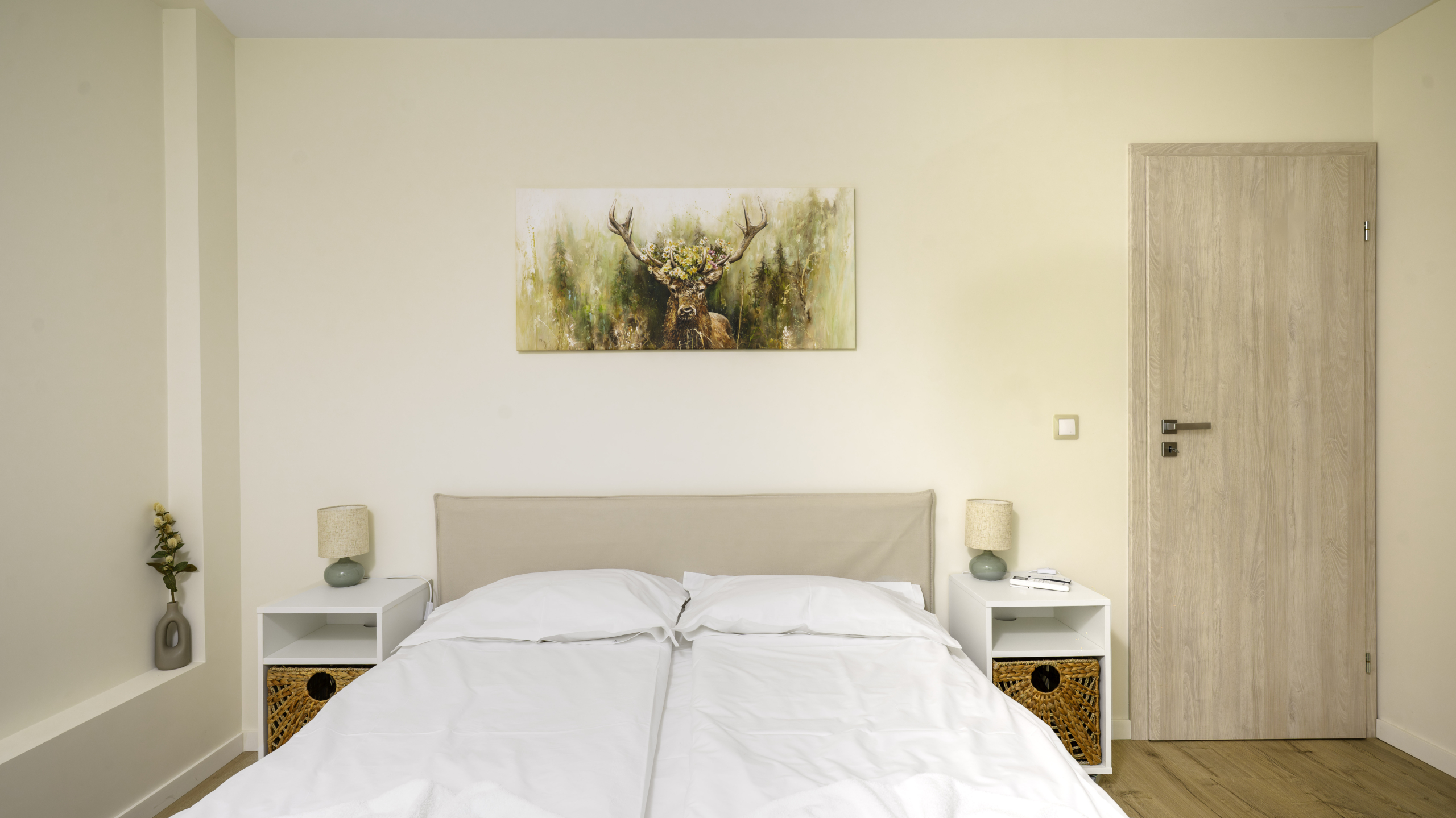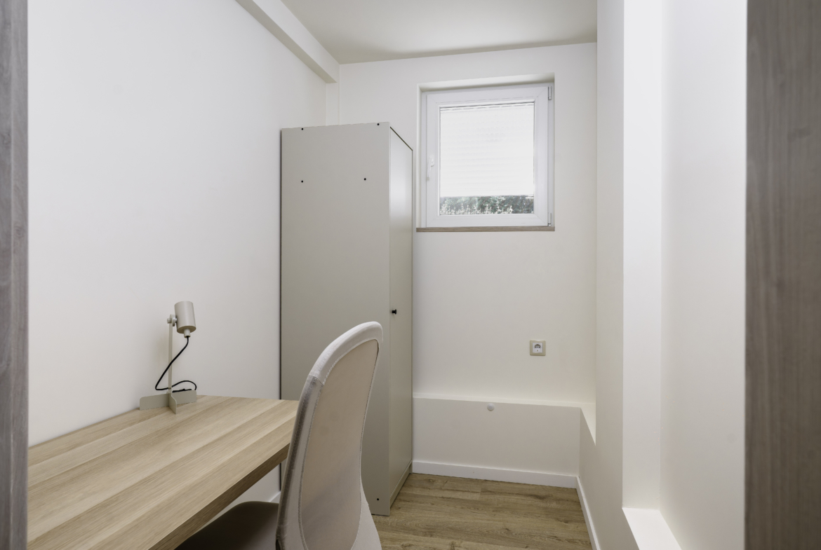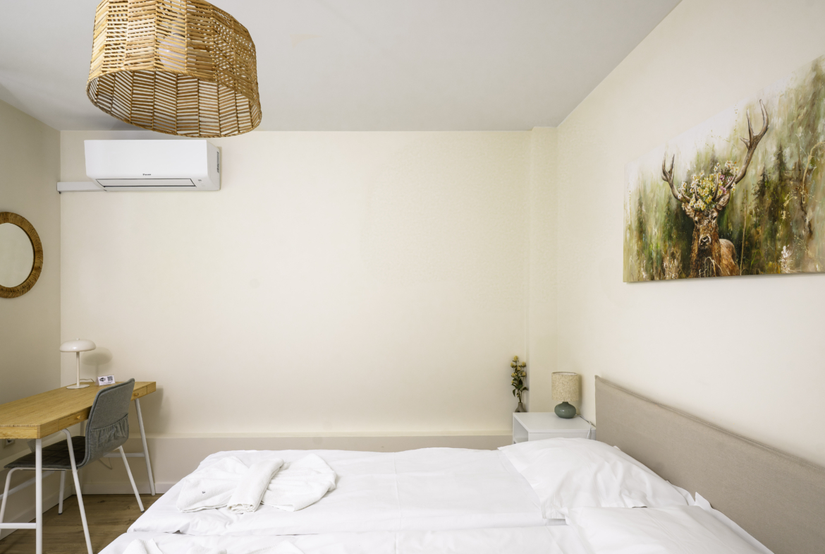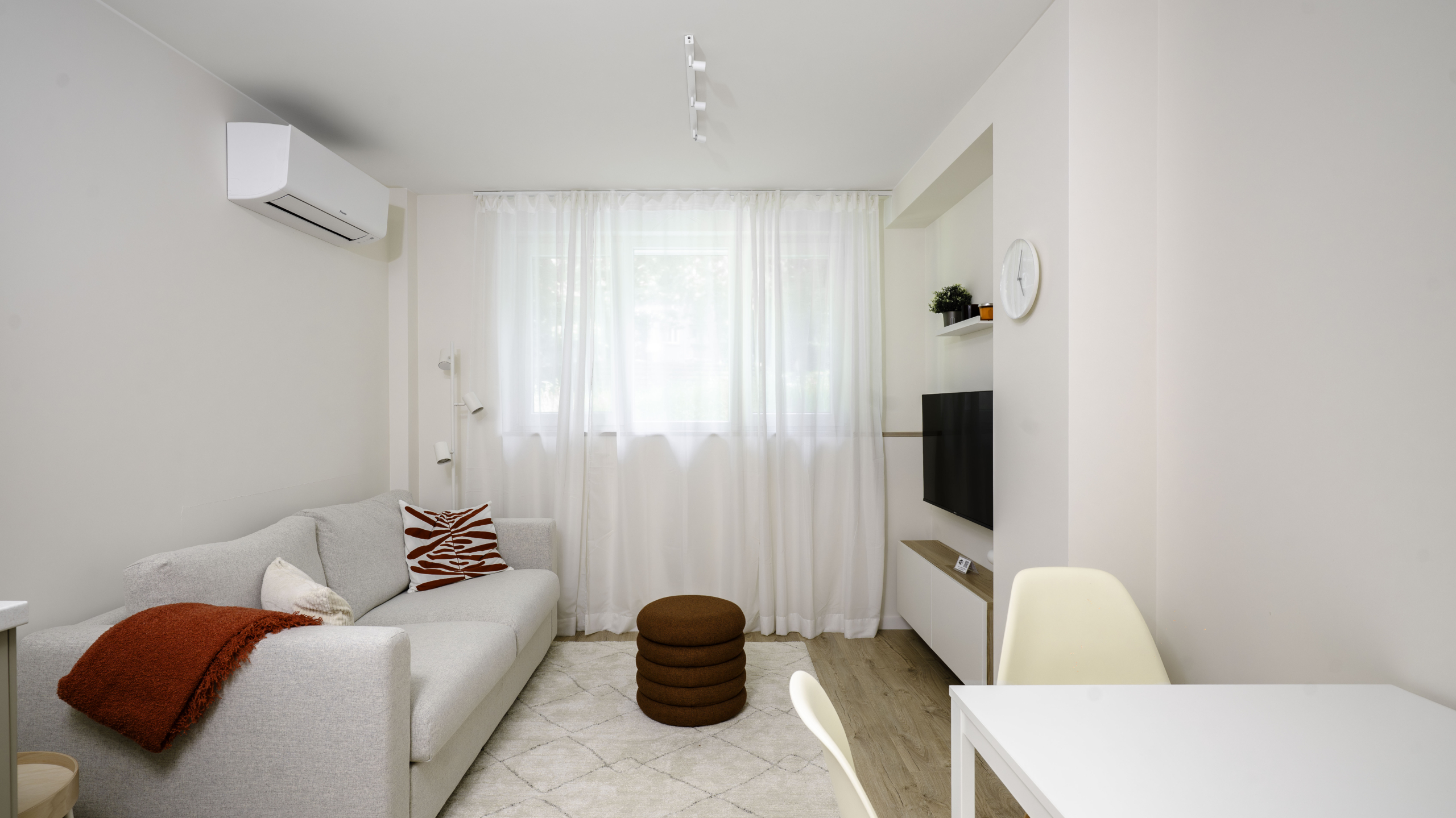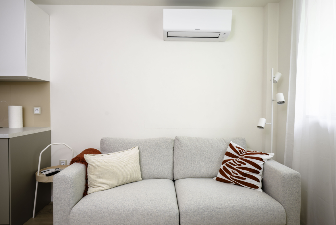 Апартаментът се отличава с топла и приветлива атмосфера, съчетавайки модерно обзавеждане и функционалност. Разполага с комфортна всекидневна, напълно оборудвана кухня и отделна спалня, която осигурява спокойствие и уединение. Има също специално обособено работно място, което го прави идеален избор за хора, които работят дистанционно.