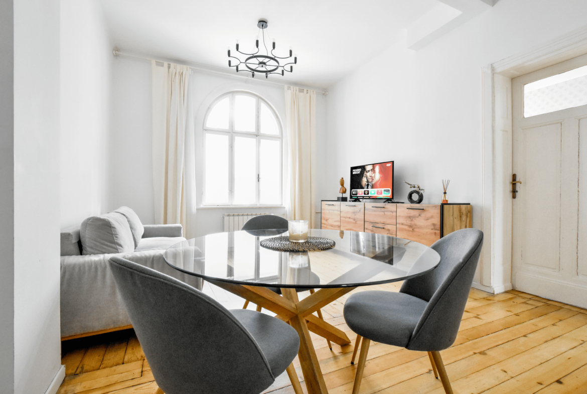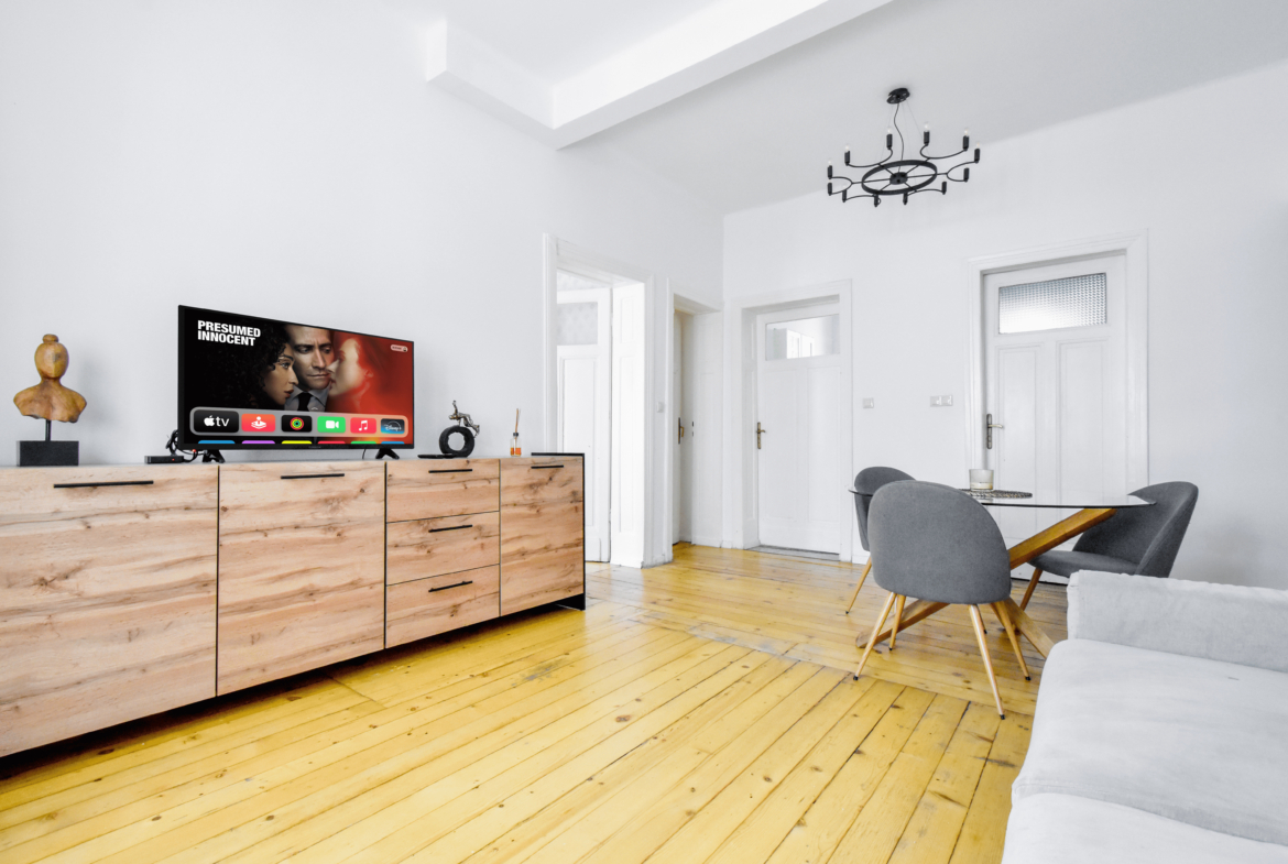 Уютен и стилен апартамент, разположен в класическа сграда в сърцето на София. Жилището съчетава елегантността на високите тавани и топлия паркет със съвременен комфорт – перфектна среда за спокоен и удобен живот.