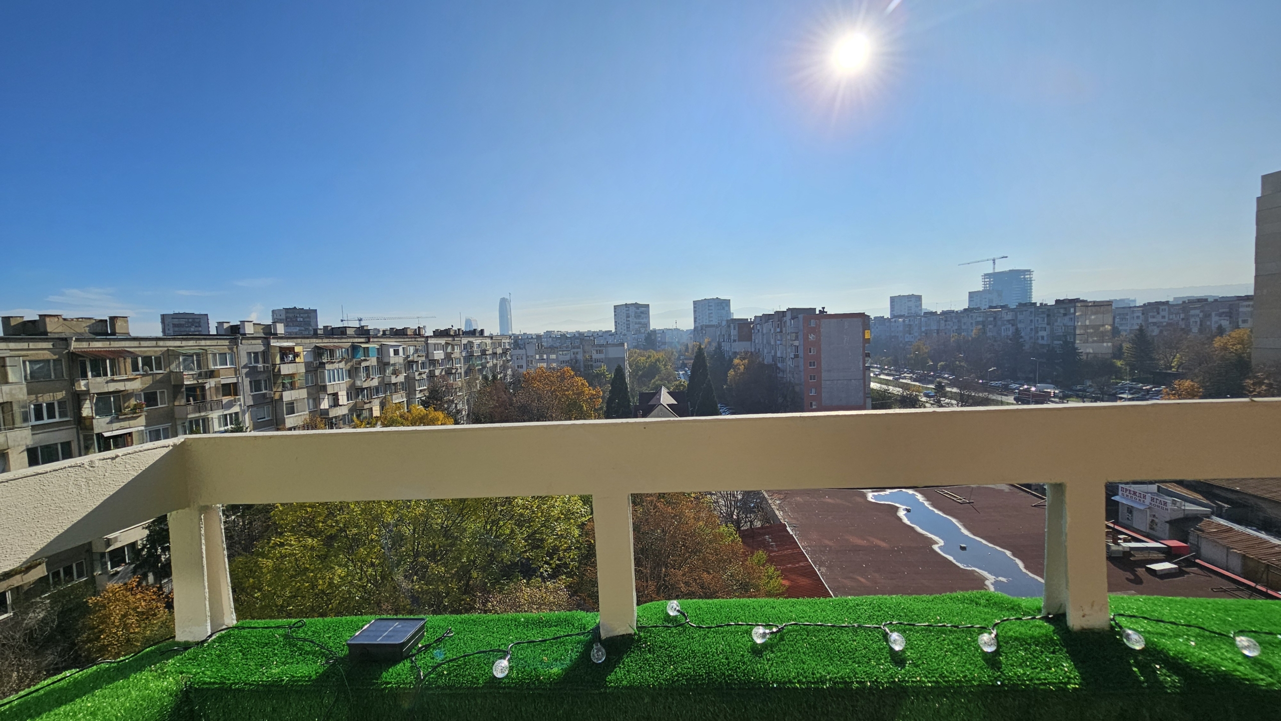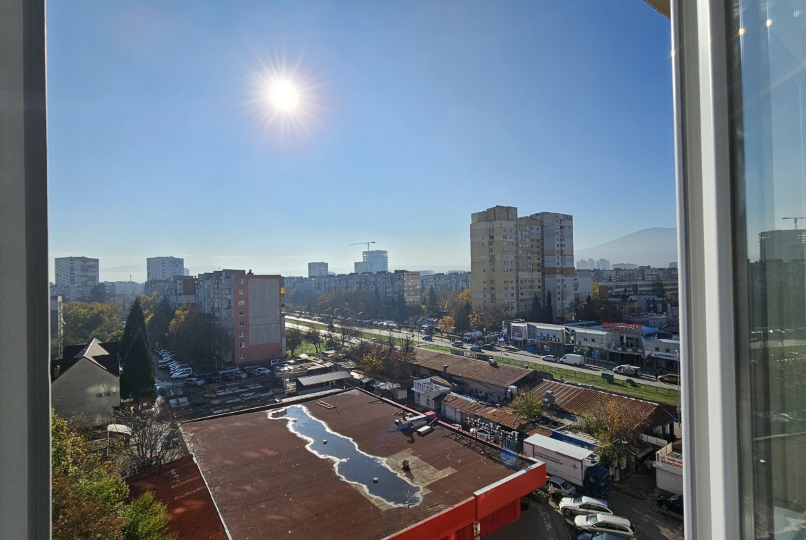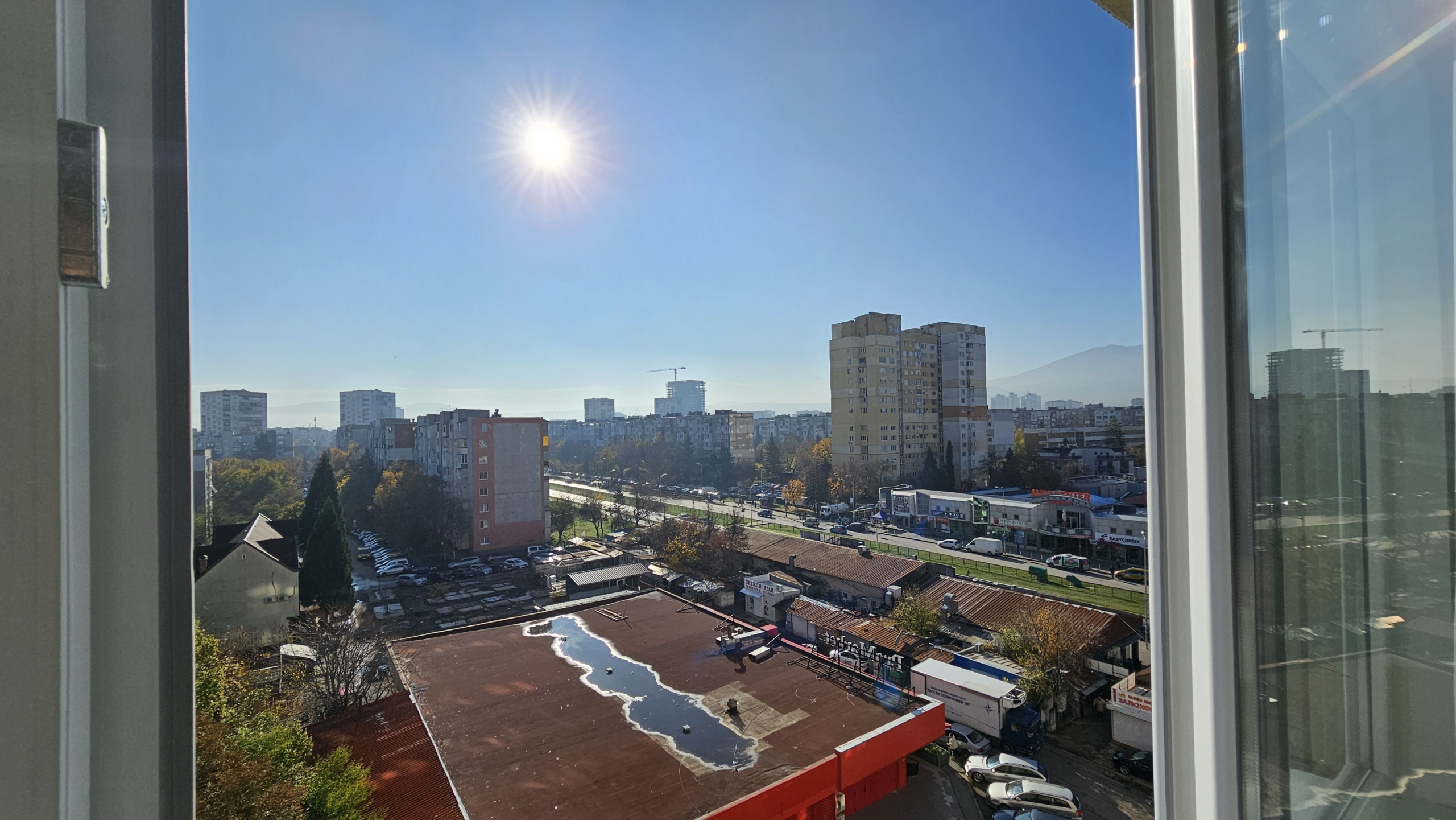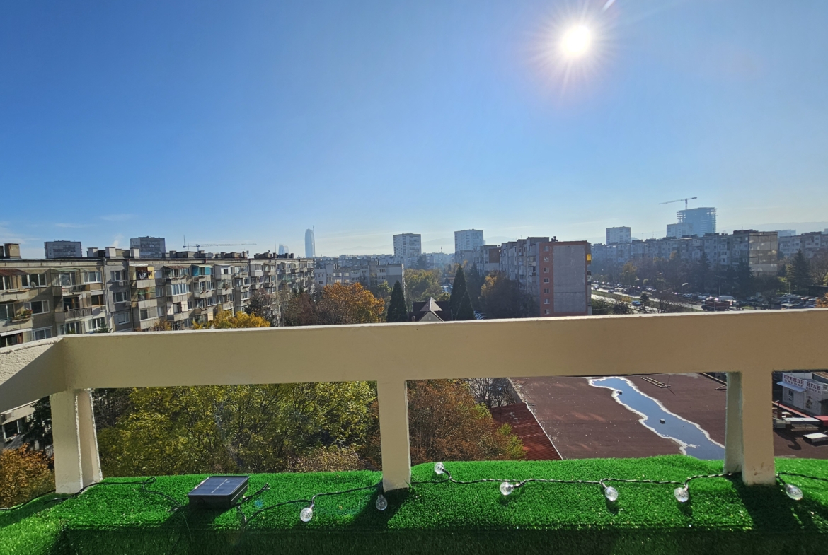 Жилището се намира на 8-ми, висок етаж, което осигурява панорамна гледка към квартала и много естествена светлина през целия ден.