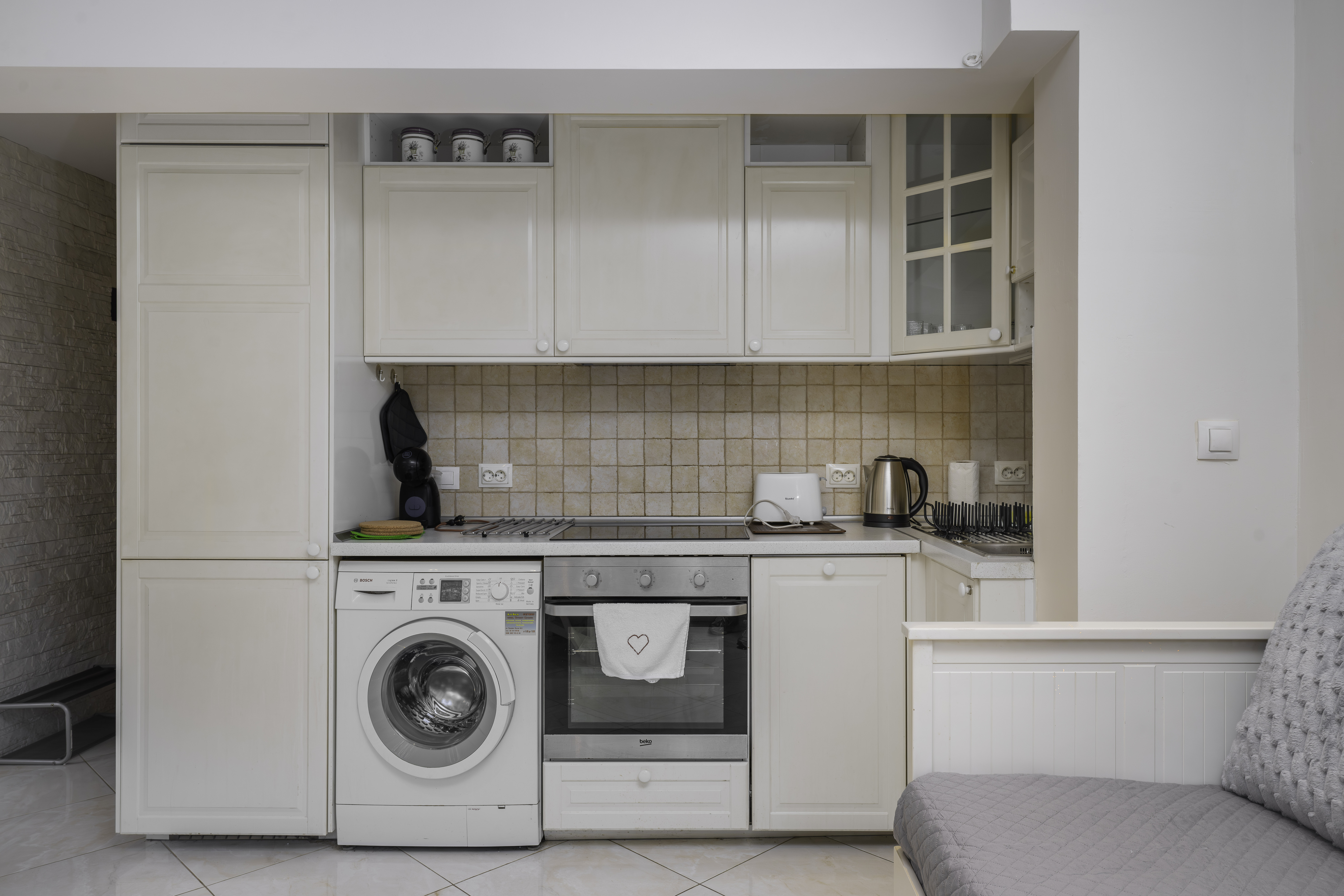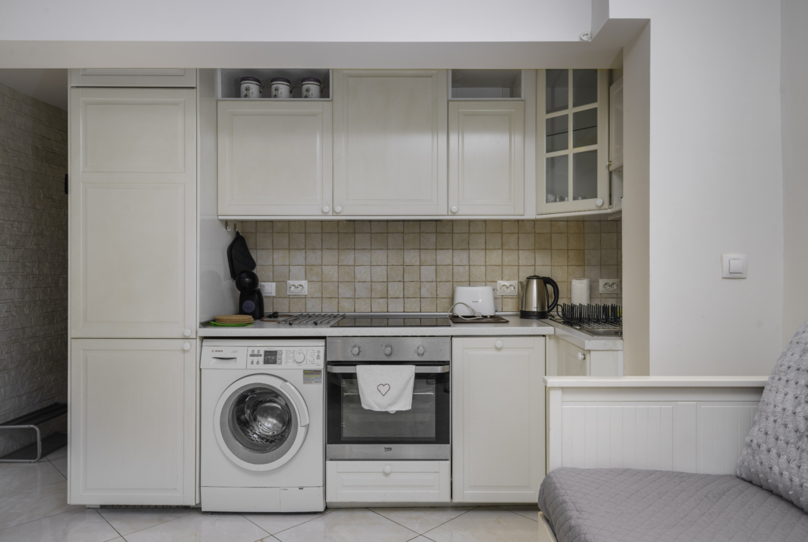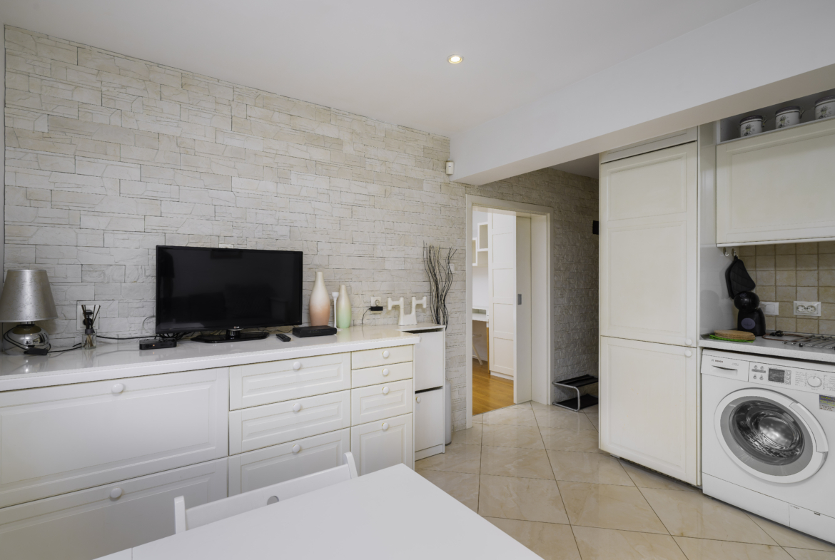 • Хол с разтегателен диван, кухня и трапезария, напълно оборудвани за комфортно ежедневие.