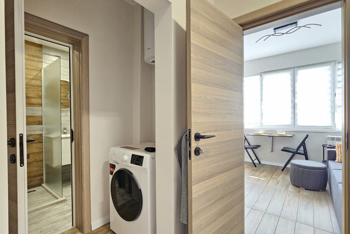 Апартаментът е напълно обзаведен и наскоро ремонтиран, което го прави готов за незабавно нанасяне – идеален избор за сам човек или млада двойка.