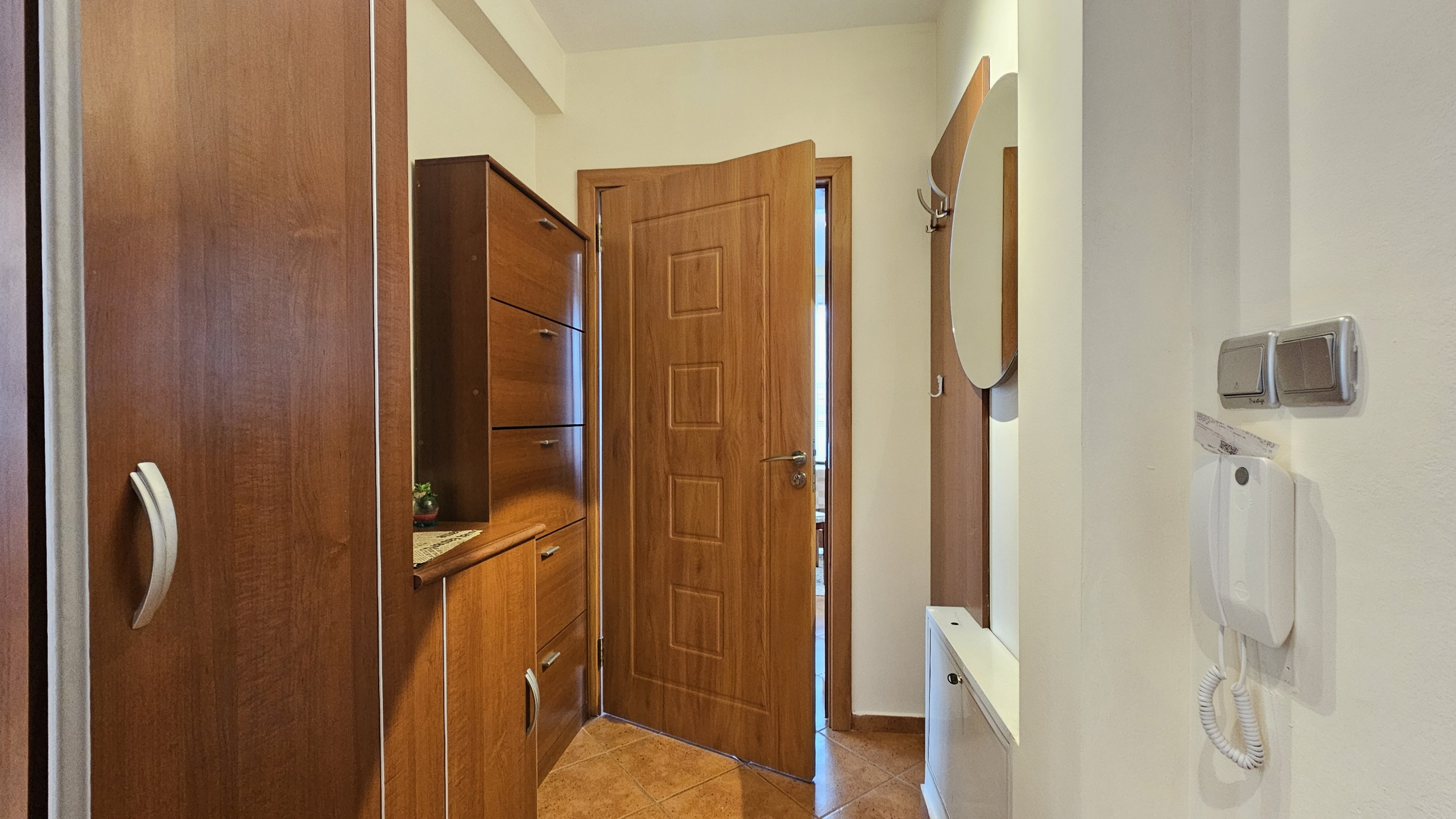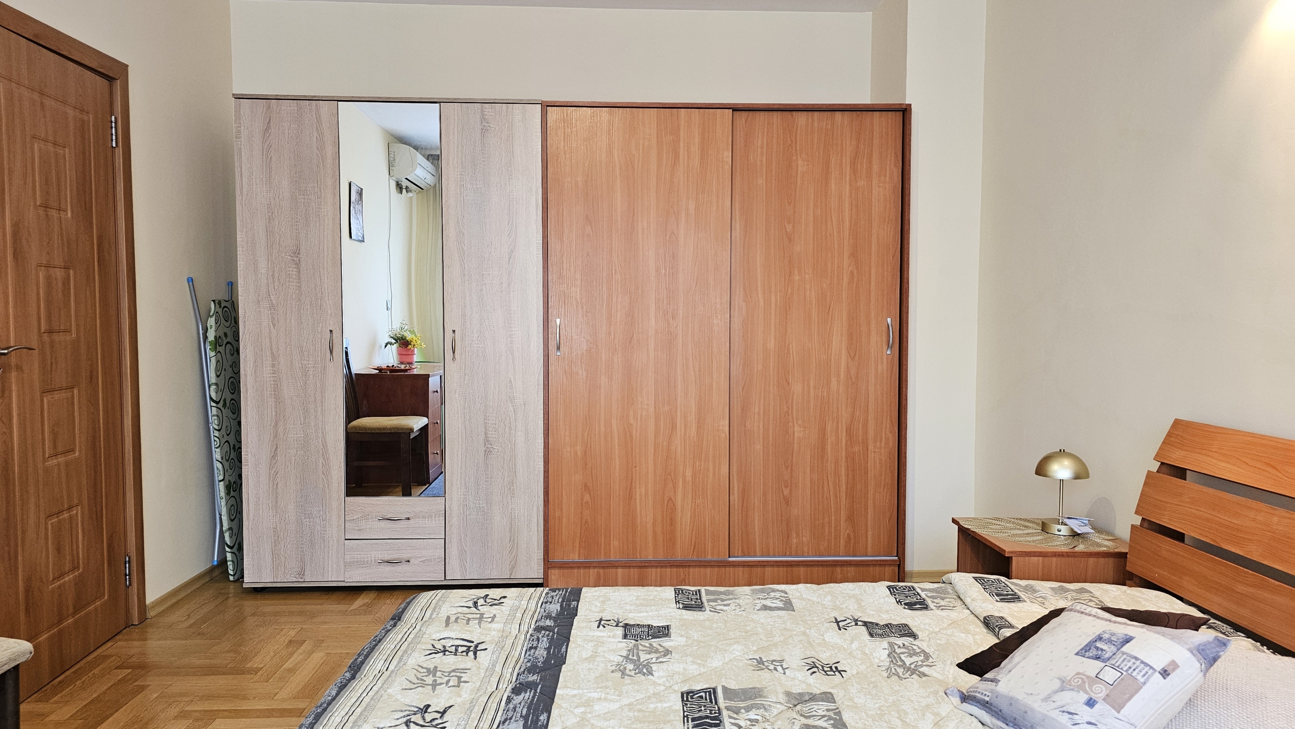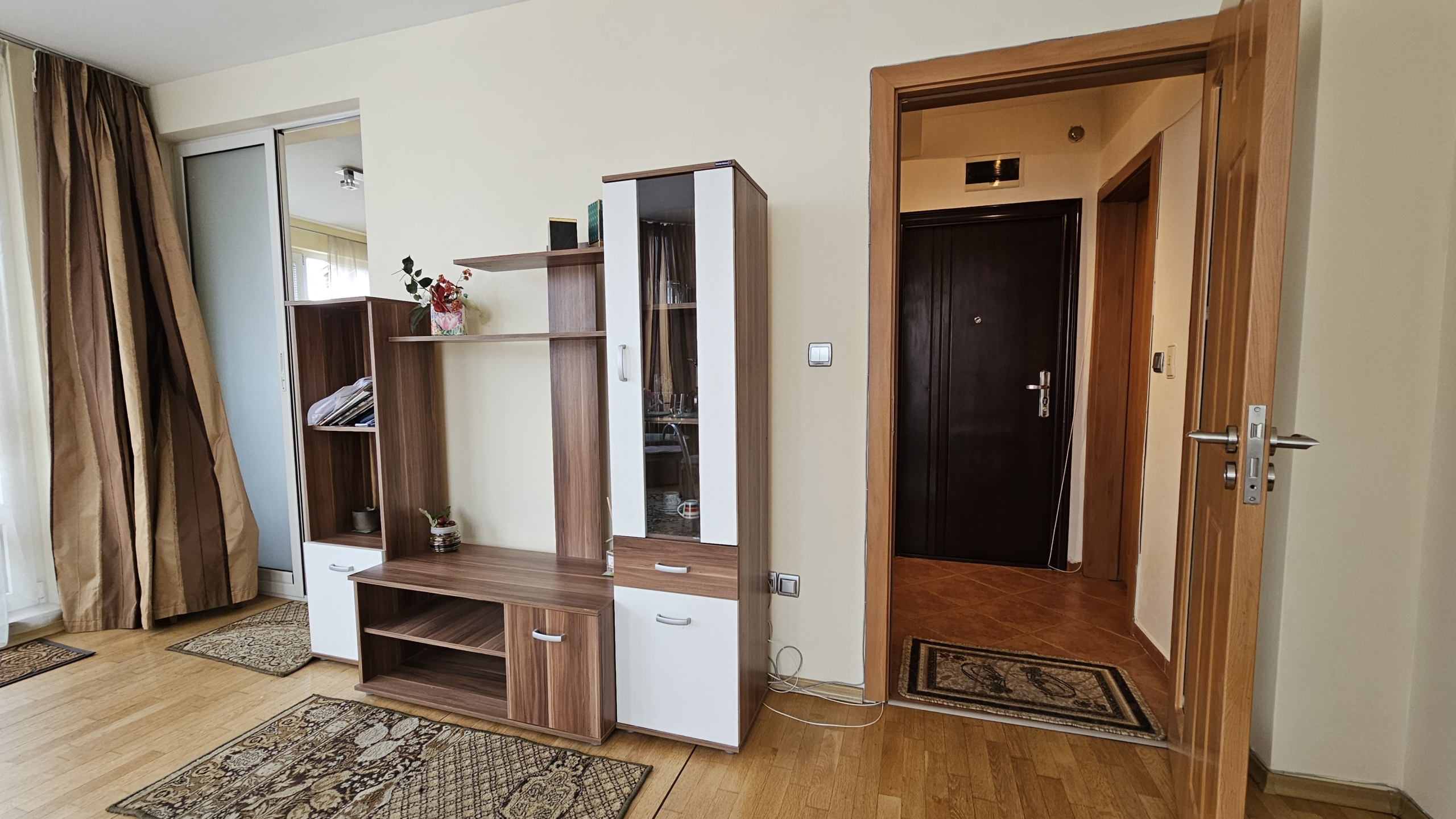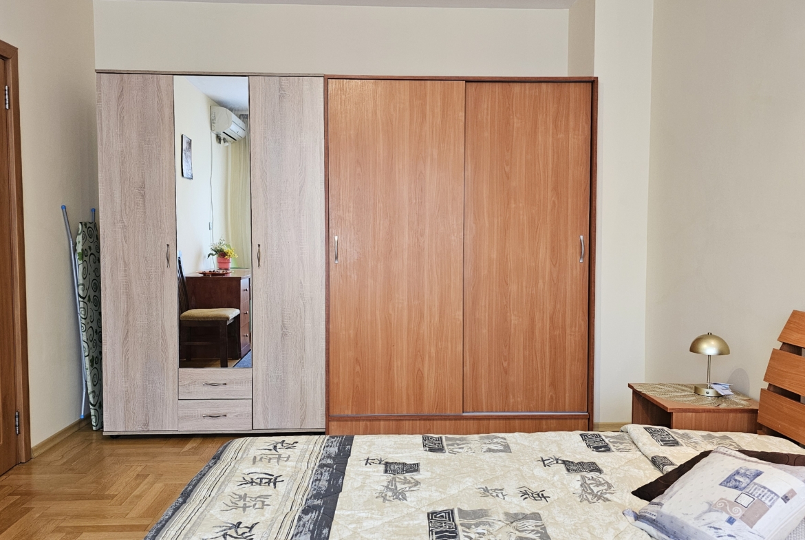 Апартаментът се отдава напълно обзаведен и оборудван с основни електроуреди. Интериорът е в светли тонове, което придава усещане за простор и уют.