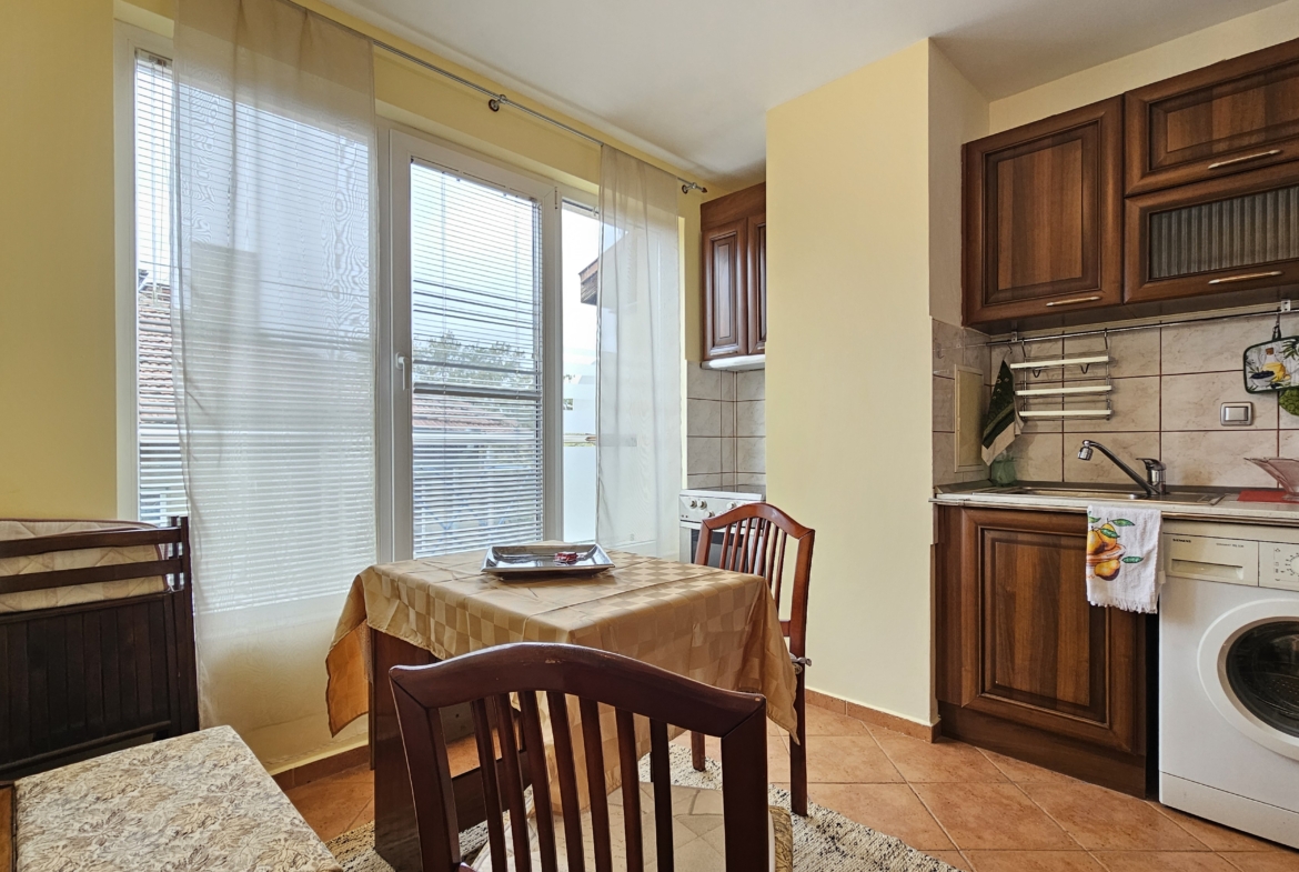 Жилището е поддържано и уютно, с функционално разпределение и отлична осветеност през целия ден благодарение на големите френски прозорци. Отоплението е на ток посредством климатици, но топлата вода е на ТЕЦ.
