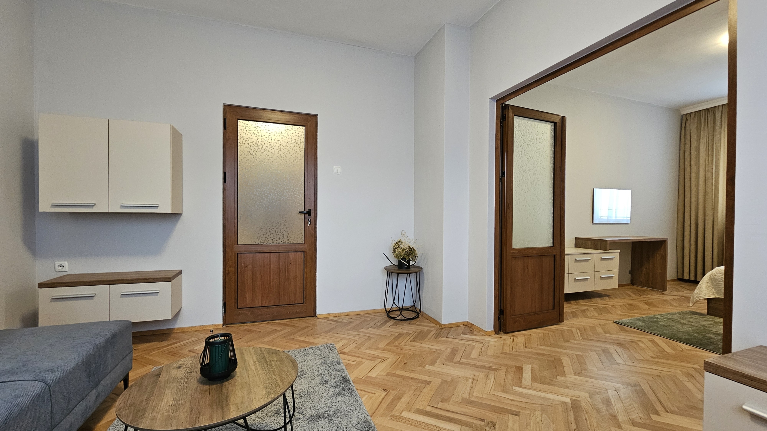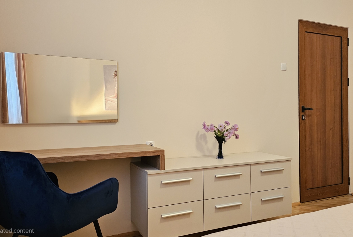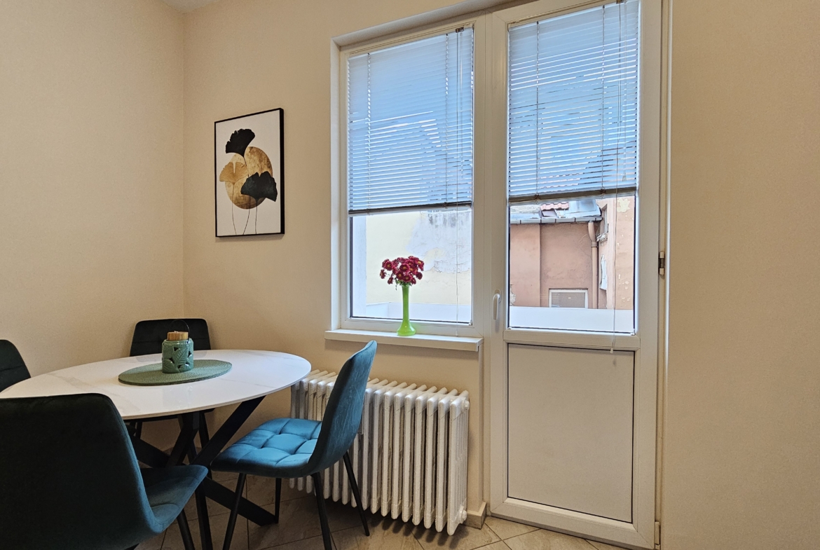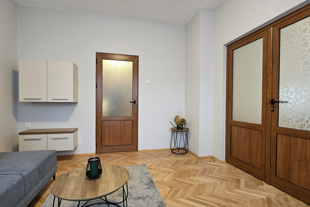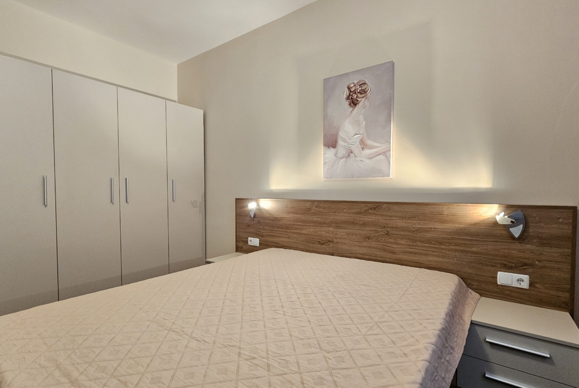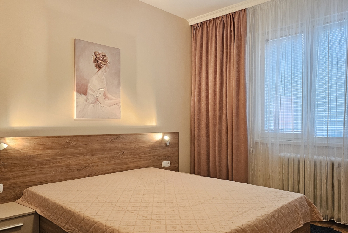 Апартаментът е след основен ремонт, предлага се изцяло обзаведен и готов за нанасяне. Интериорът съчетава модерна визия и уют.