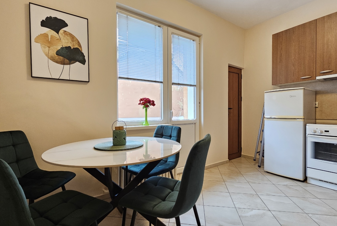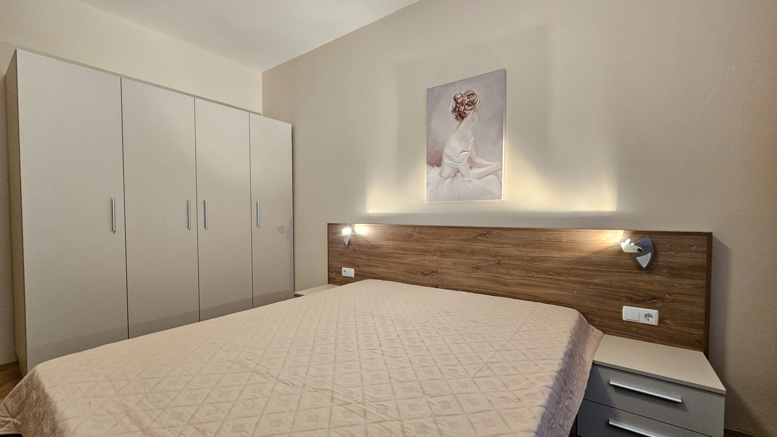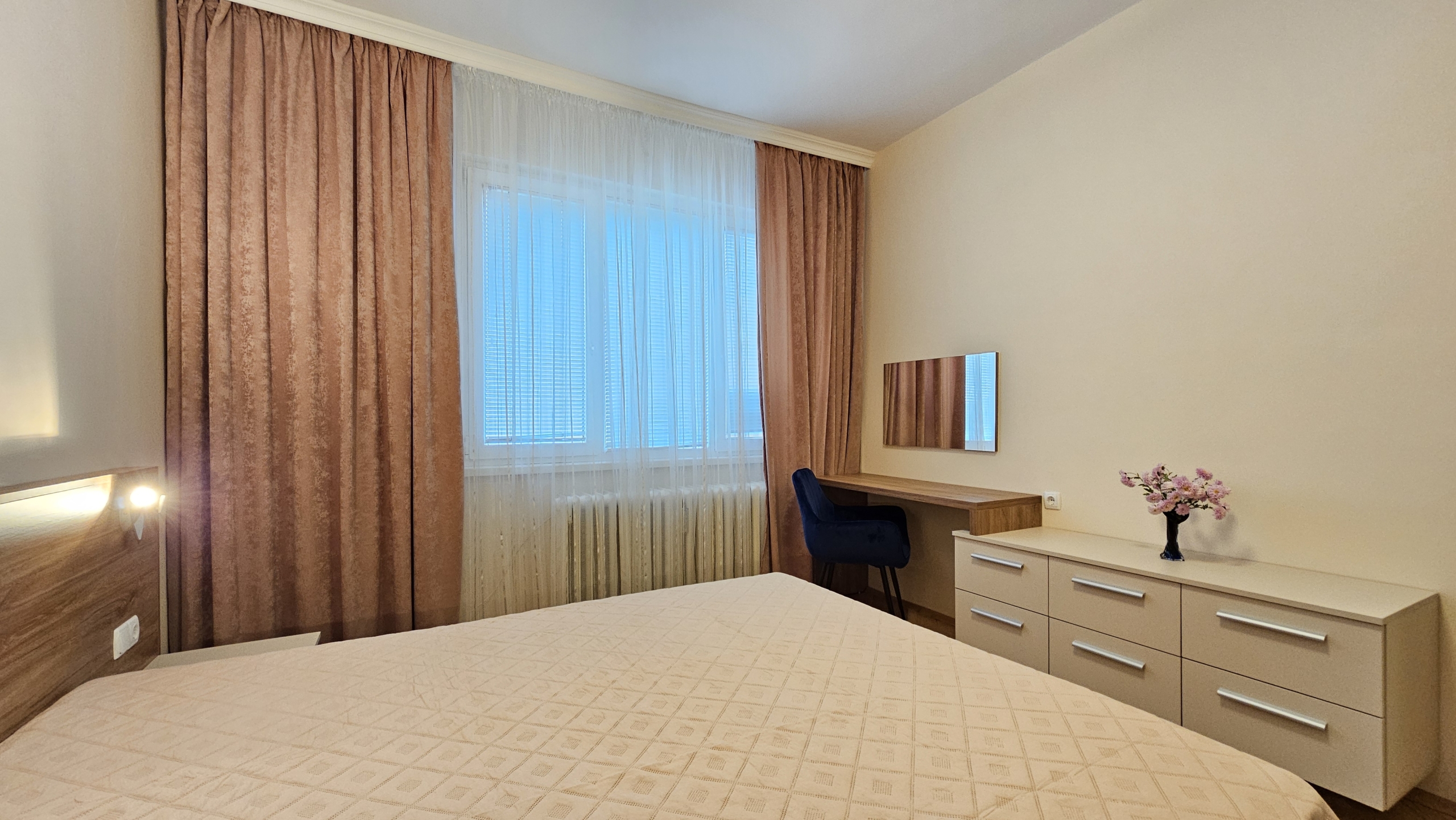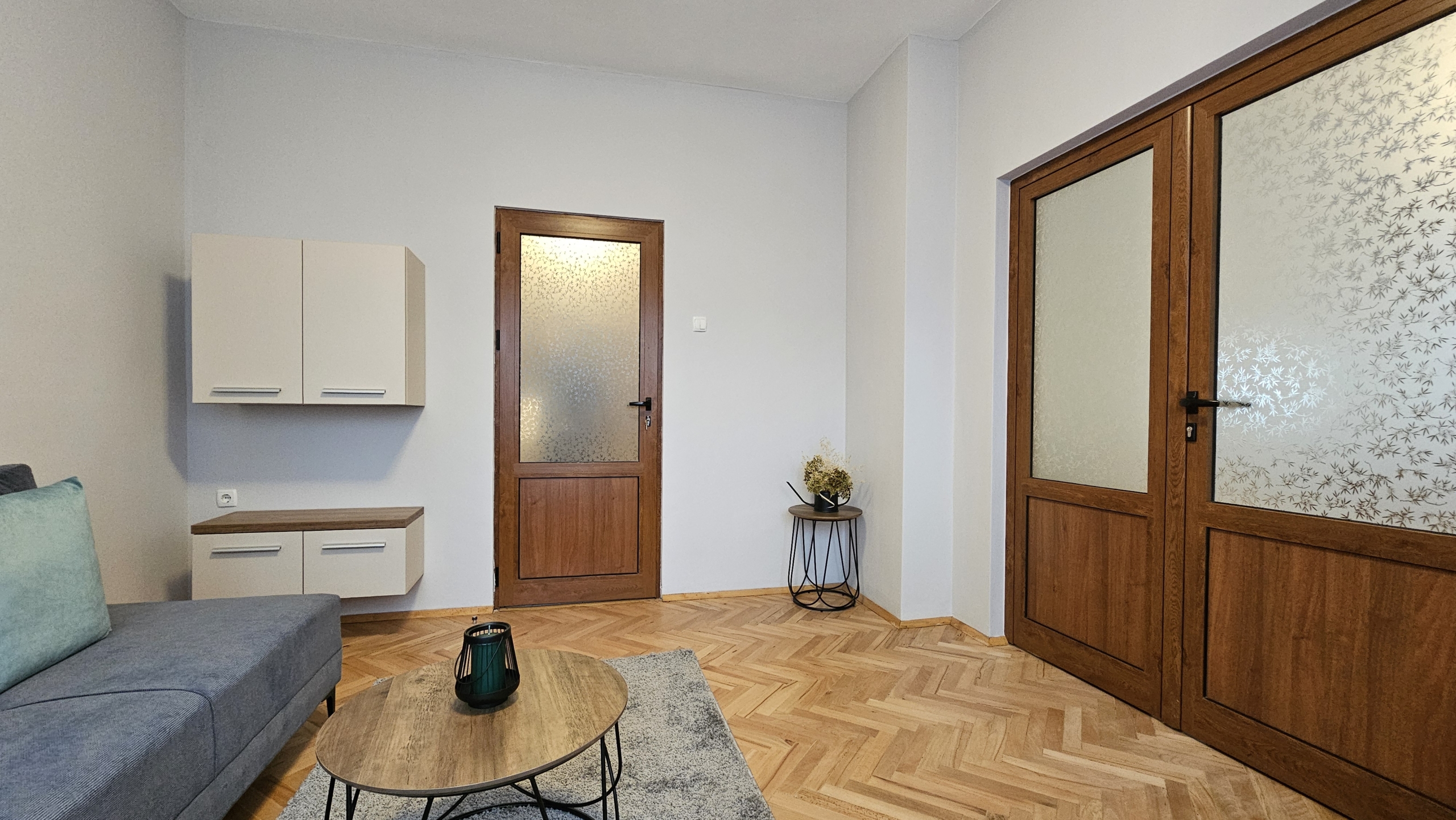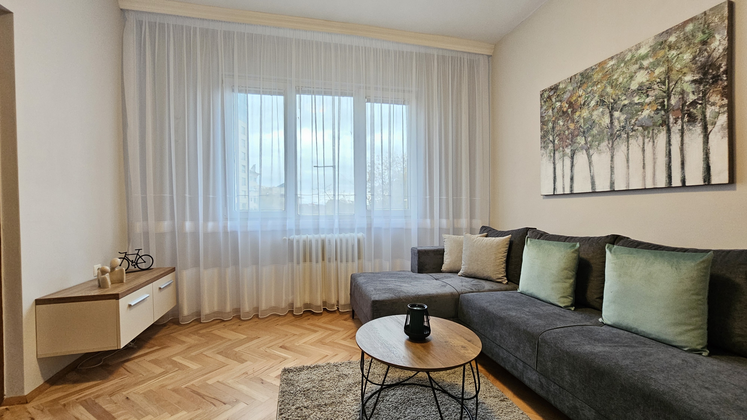 Апартаментът е след основен ремонт, предлага се изцяло обзаведен и готов за нанасяне. Интериорът съчетава модерна визия и уют.
