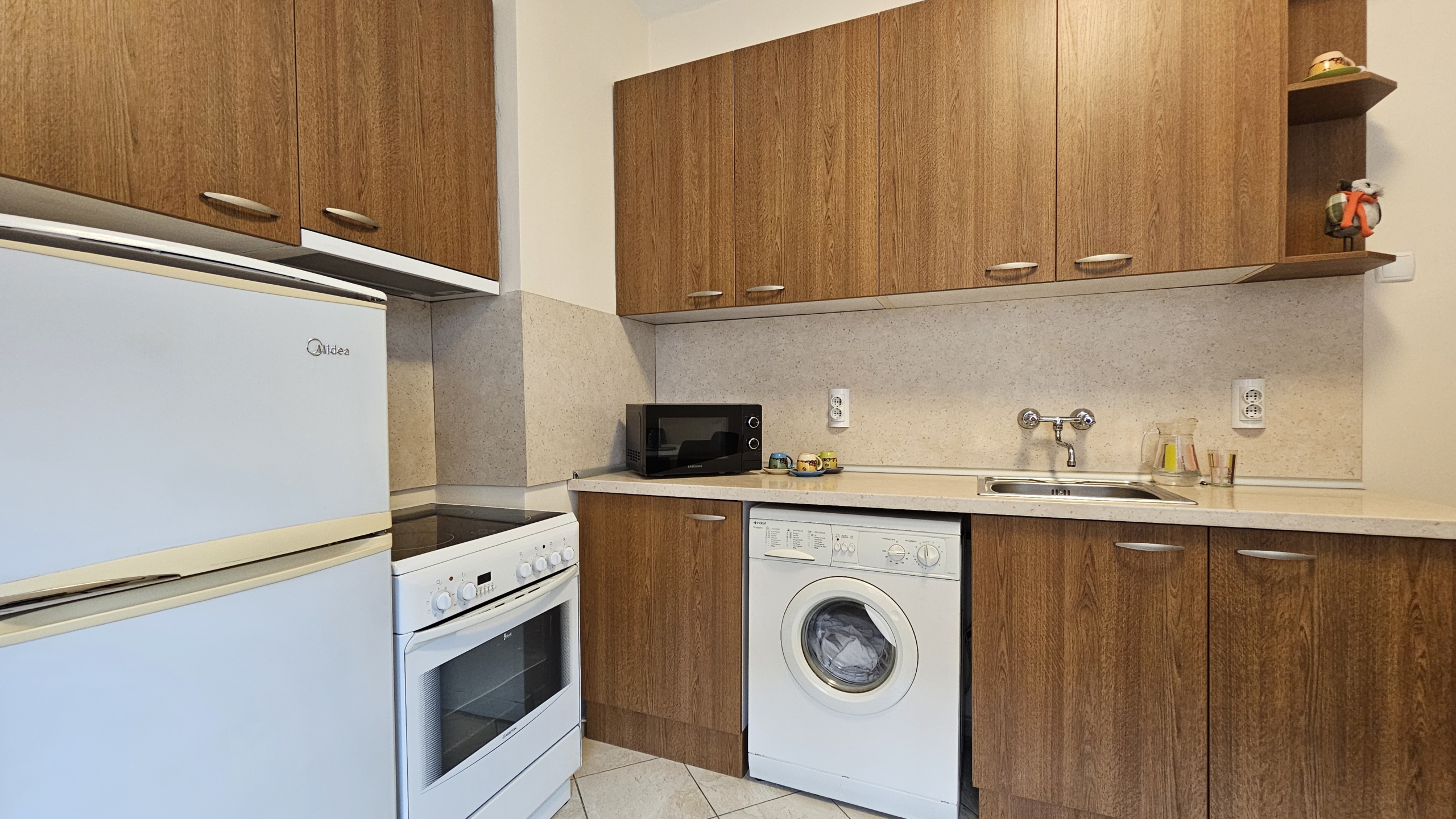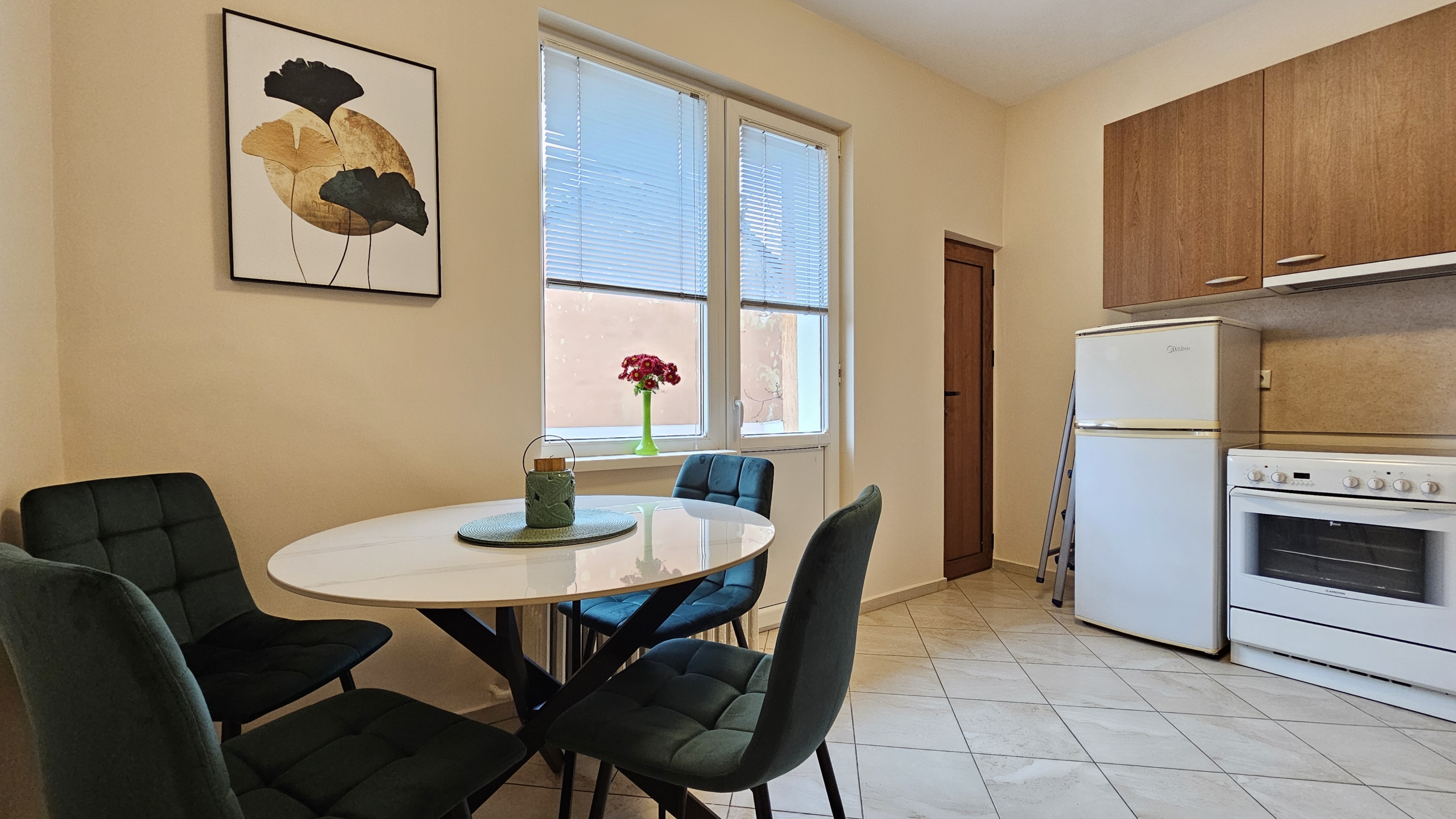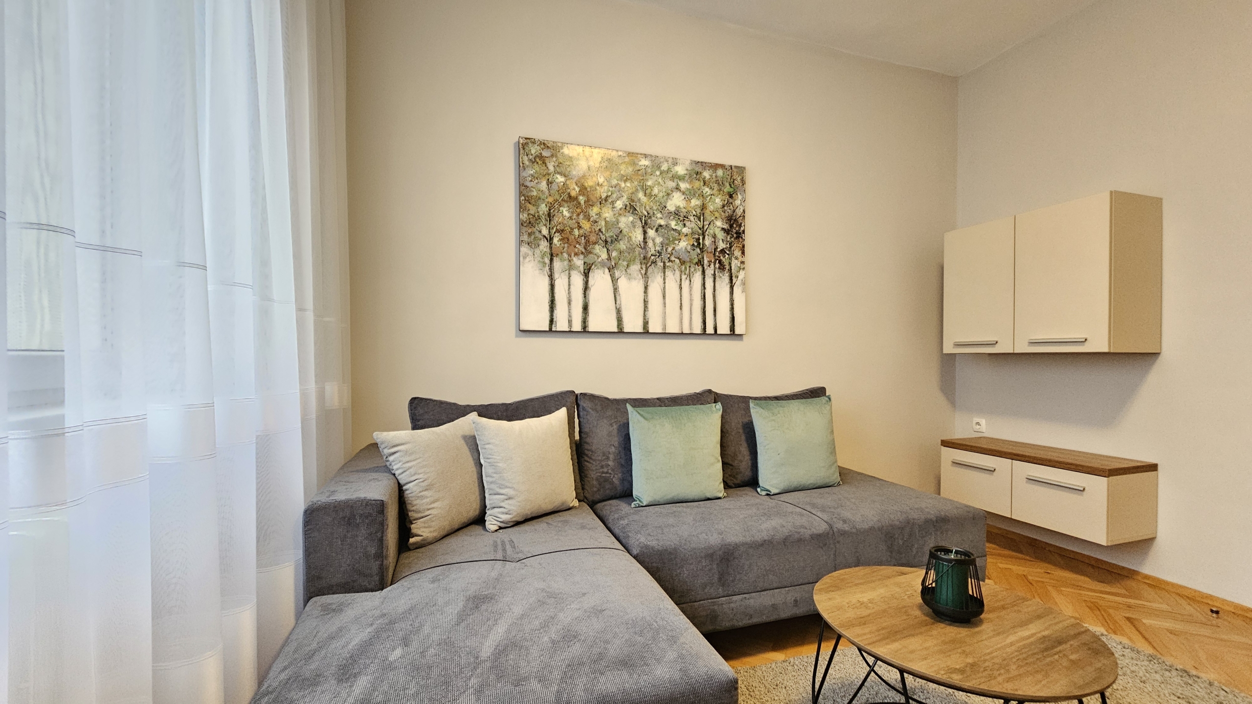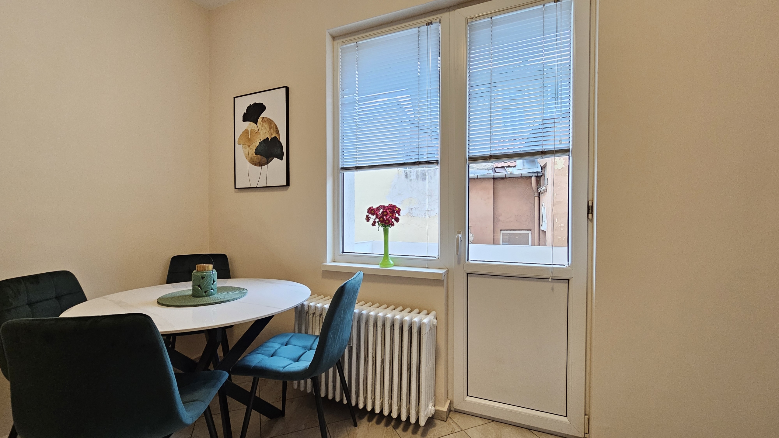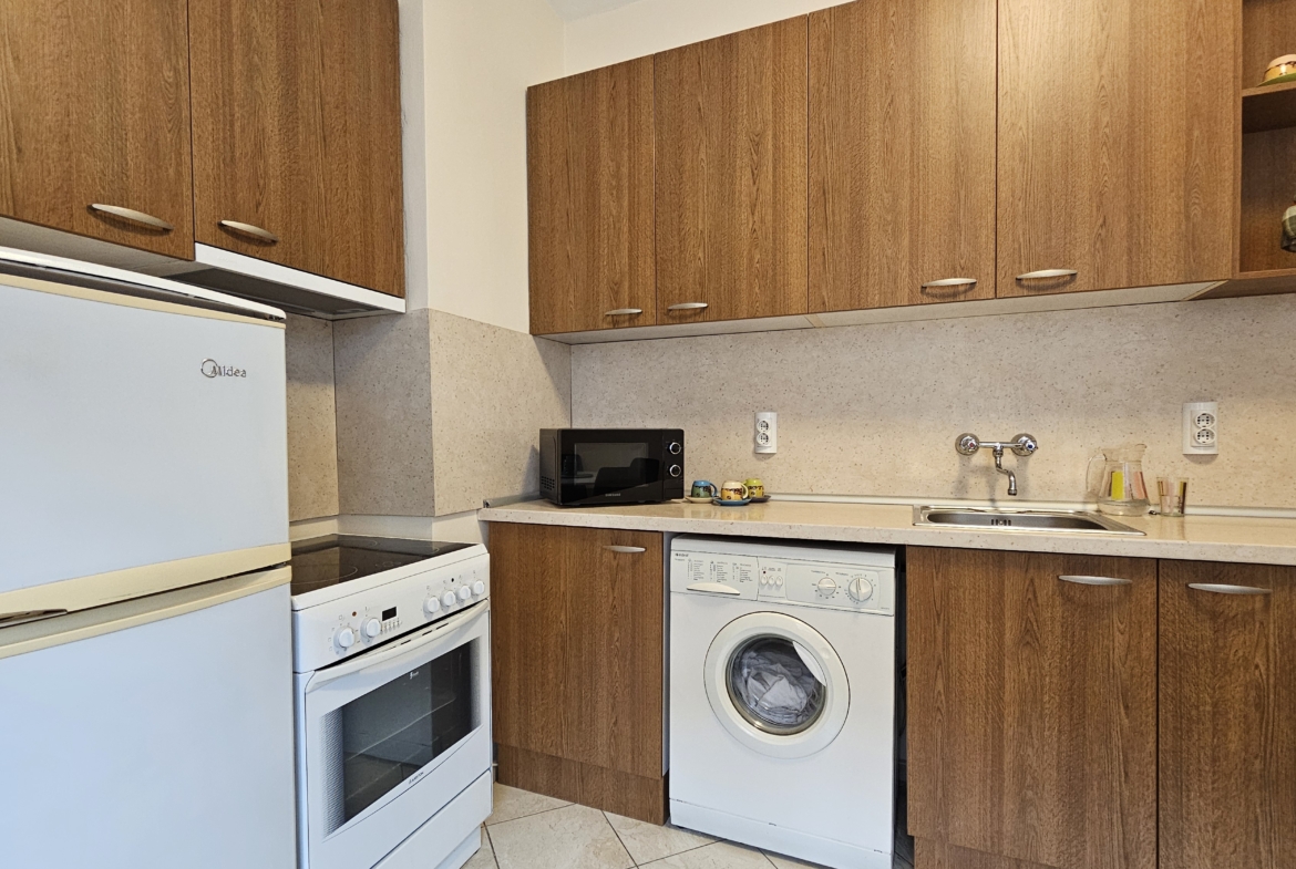 Апартаментът е след основен ремонт, предлага се изцяло обзаведен и готов за нанасяне. Интериорът съчетава модерна визия и уют.