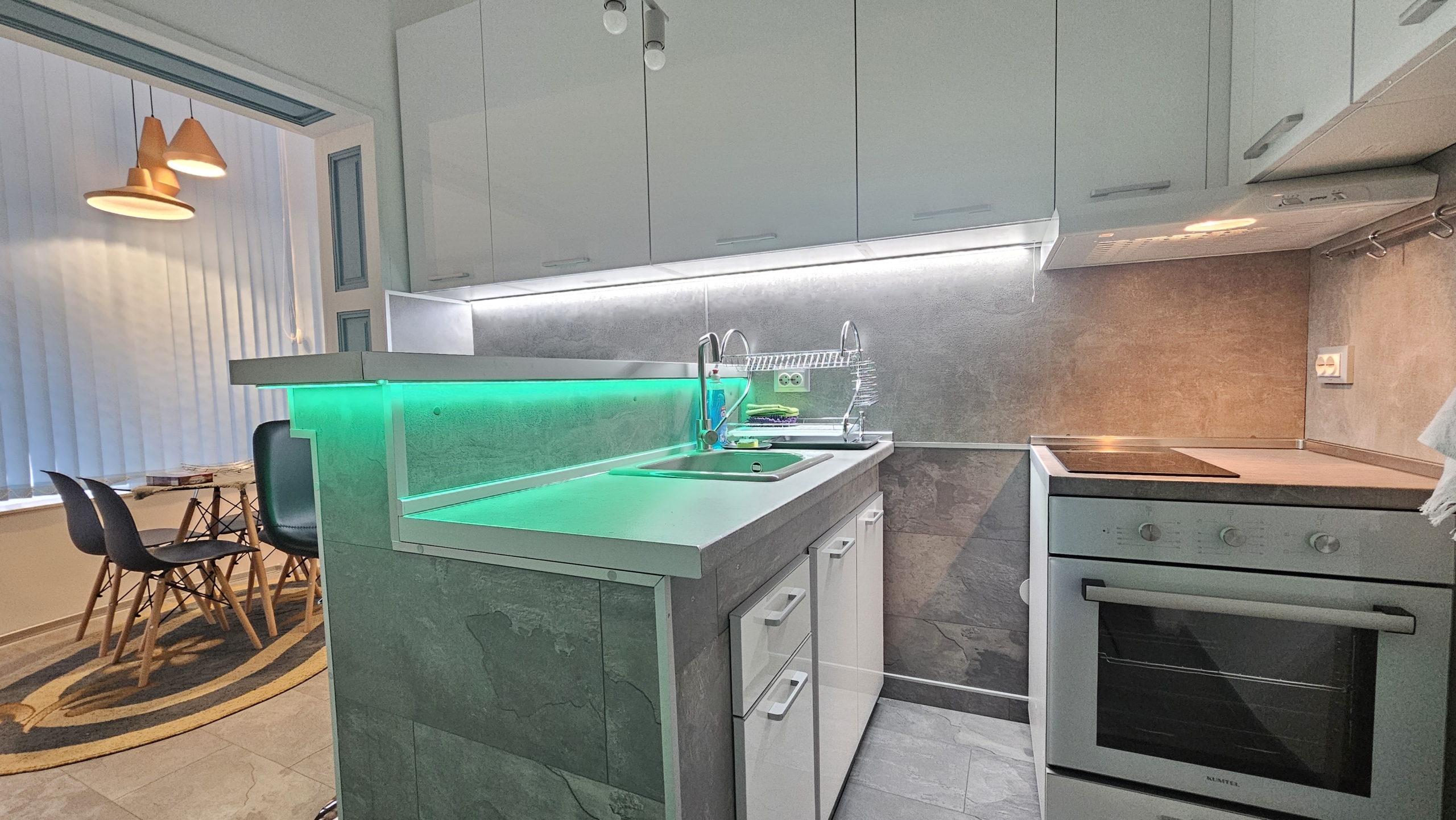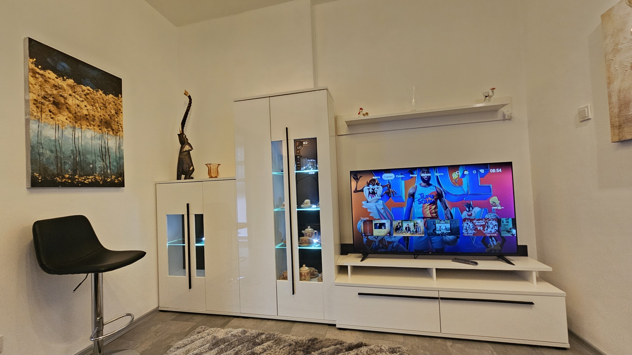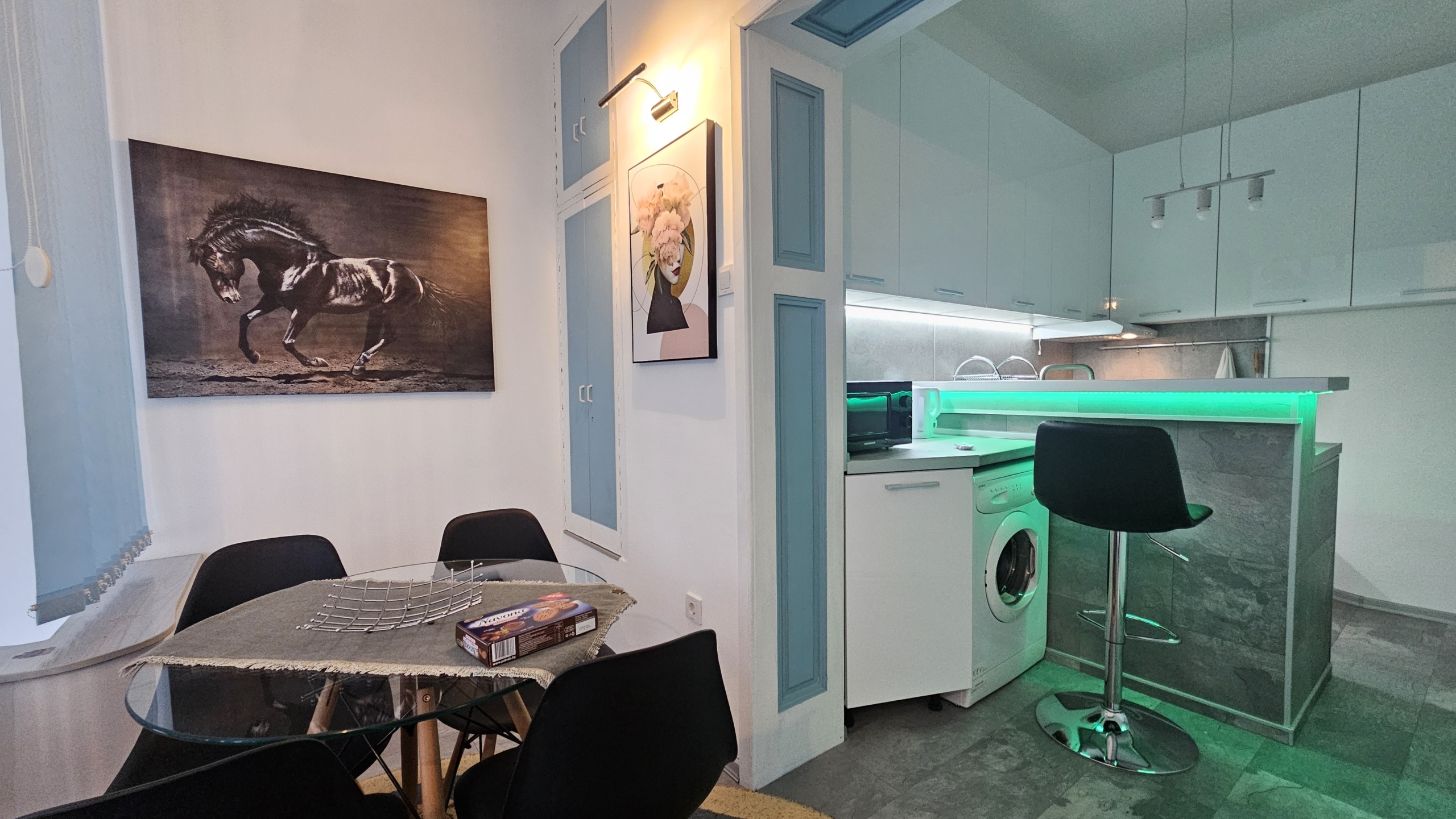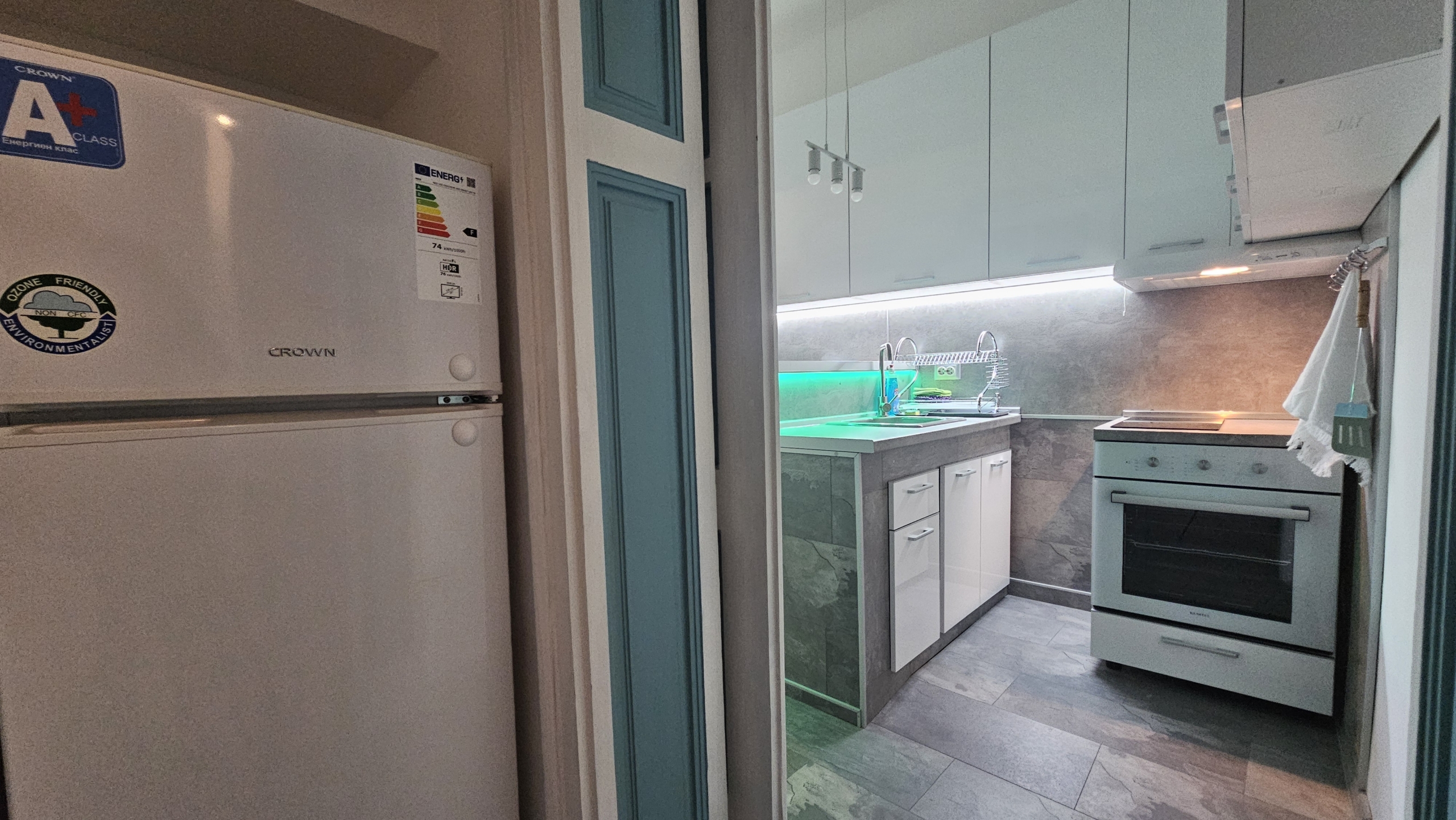 Апартаментът е изцяло обзаведен и напълно оборудван с всичко необходимо за комфортен престой. Отоплението и охлаждането са решени чрез климатици във всяка стая, което осигурява удобство през всички сезони.