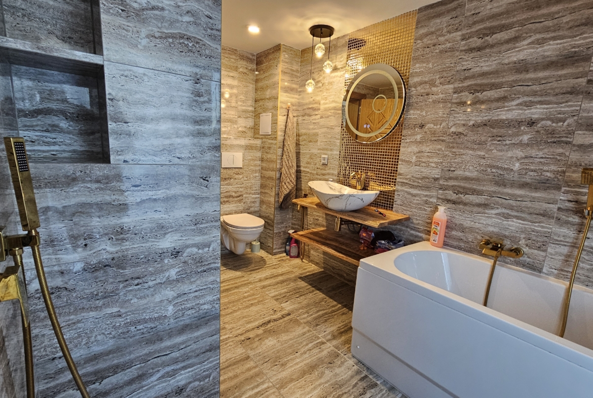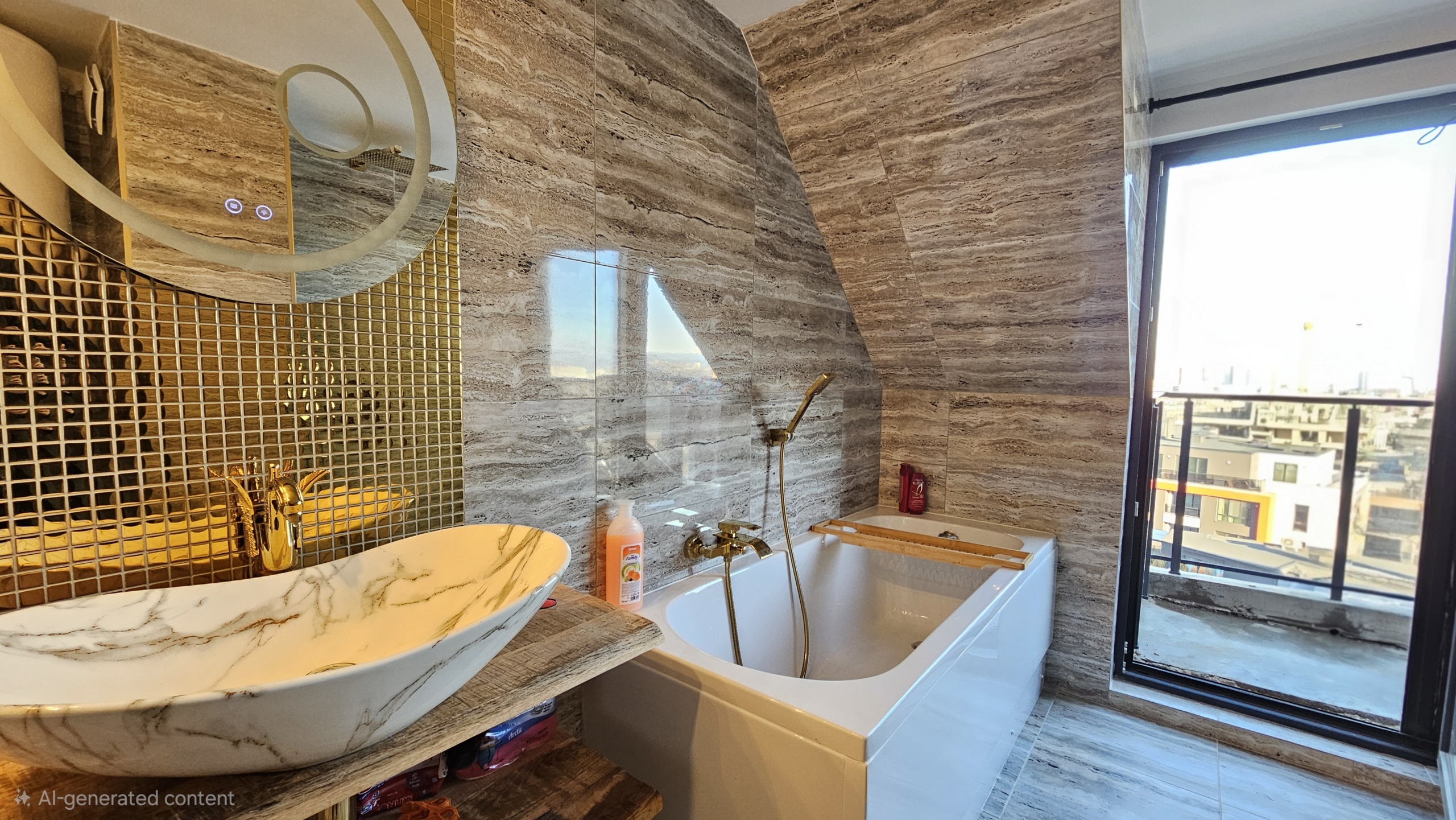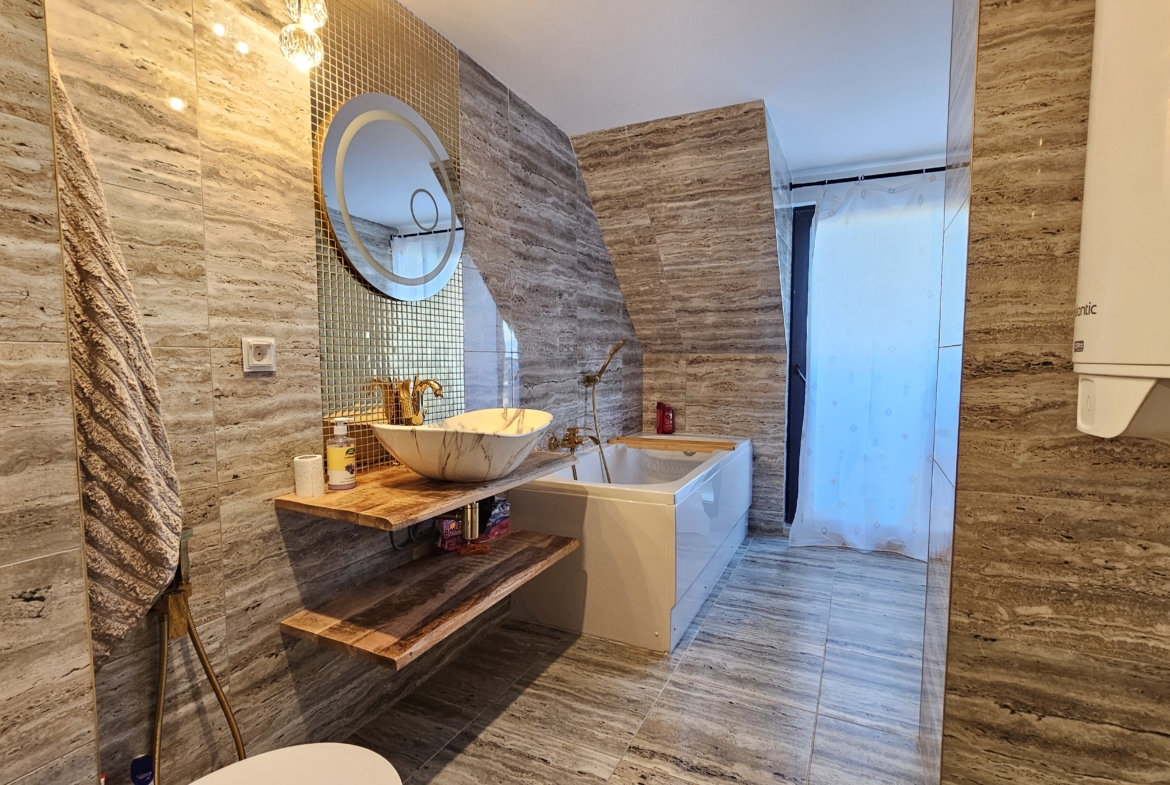 • Голяма, модерна баня с тоалетна и излаз към втора тераса